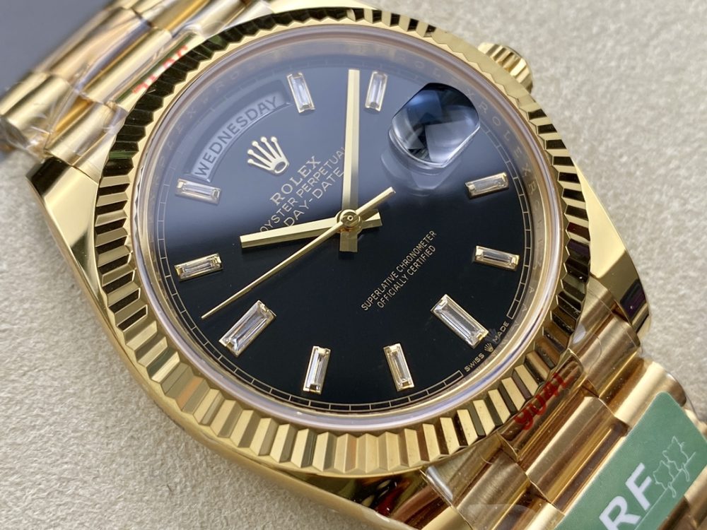 ARF廠推出的V2配重版精仿手錶,完美複刻了勞力士DD雙曆星期日誌型。這款腕錶採用3255一體機芯,重量達160克,與原版一致。ARF廠在細節上精益求精,從殼的厚度、面板刻度到鋼帶散件均反覆修改,確保還原1:1神韻。電鍍顏色經過專門調配並增加納米保護層,防止掉色。所有配件承諾與正品通用,展現了頂級精仿工藝。