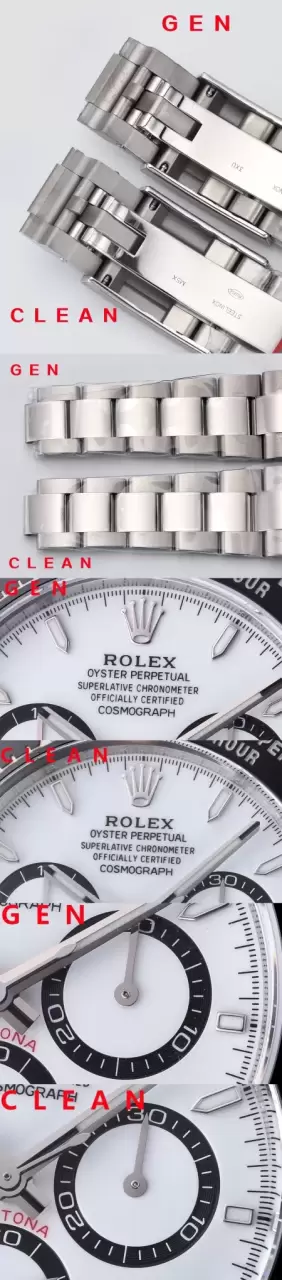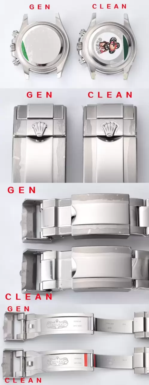 錶殼錶帶上面也有圖片對比,整體外觀差異不大。雖然這次時間特別緊張,但是 clean 在第一時間購買真品五隻,據說手錶本身的價值跌幅已經超過 10w 美金,這個當中不包含已經拆卸的手錶,以及損壞的零件。