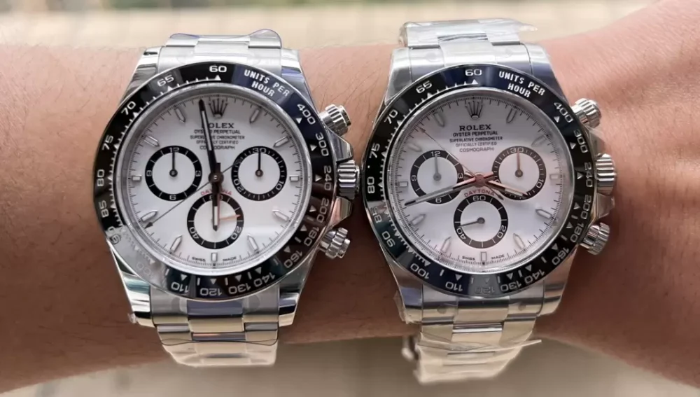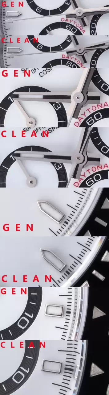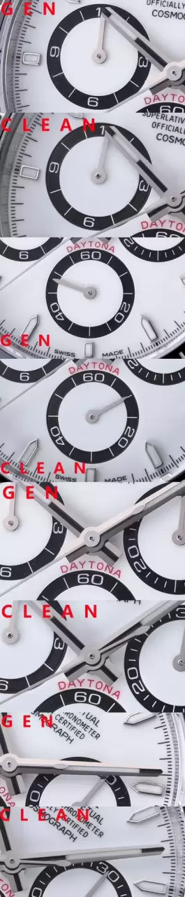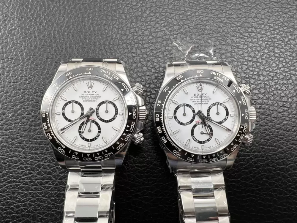 這篇高仿手錶對比評測深入分析了Clean廠出品的Rolex勞力士宇宙計型迪通拿系列“熊貓迪”腕表。評測重點對比了其搭載的上海4131機芯與真品在細節上的差異,例如錶盤小圈的工藝、字釘夜光及指針管頭等。文章指出,儘管在極細微處與真品存在差異,但Clean廠在整體外觀、陶瓷圈口及904L鋼材質上的還原度相當高,是一次值得關注的復刻表創作。