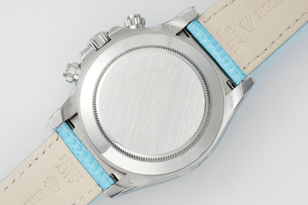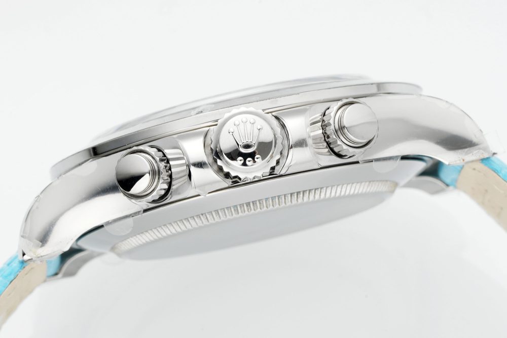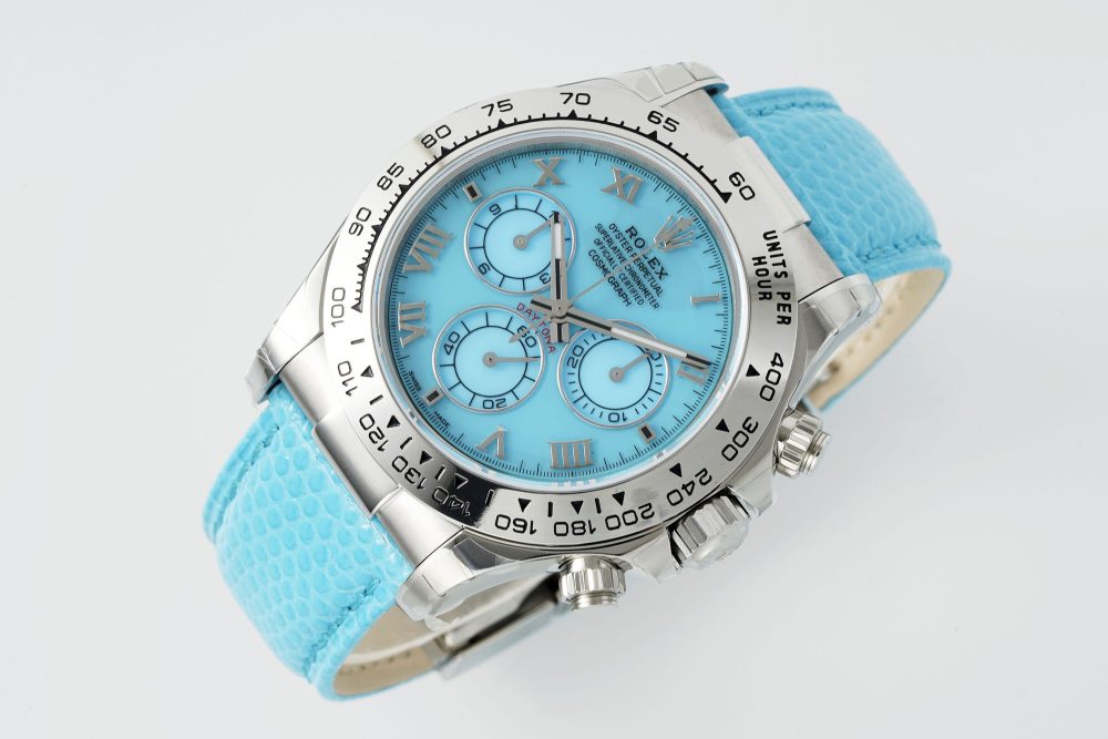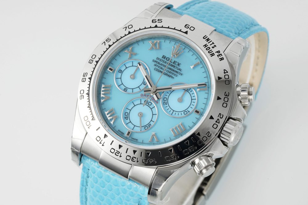 PPM廠推出的改裝迪通拿堪稱最強代用盤,專注於高端復刻手錶市場。其核心亮點在於採用獨一檔的玉髓材質打造雙層代用盤,工藝極其複雜。由於40毫米的厚度要求及雙層切割技術,玉髓盤的報廢率極高,平均六片原料才能成就一片完整完美的錶盤。盤面經過高光打磨,並配以弧形羅馬釘時標,確保從每個角度觀賞都能呈現出璀璨的反光效果,細節品質無可挑剔。