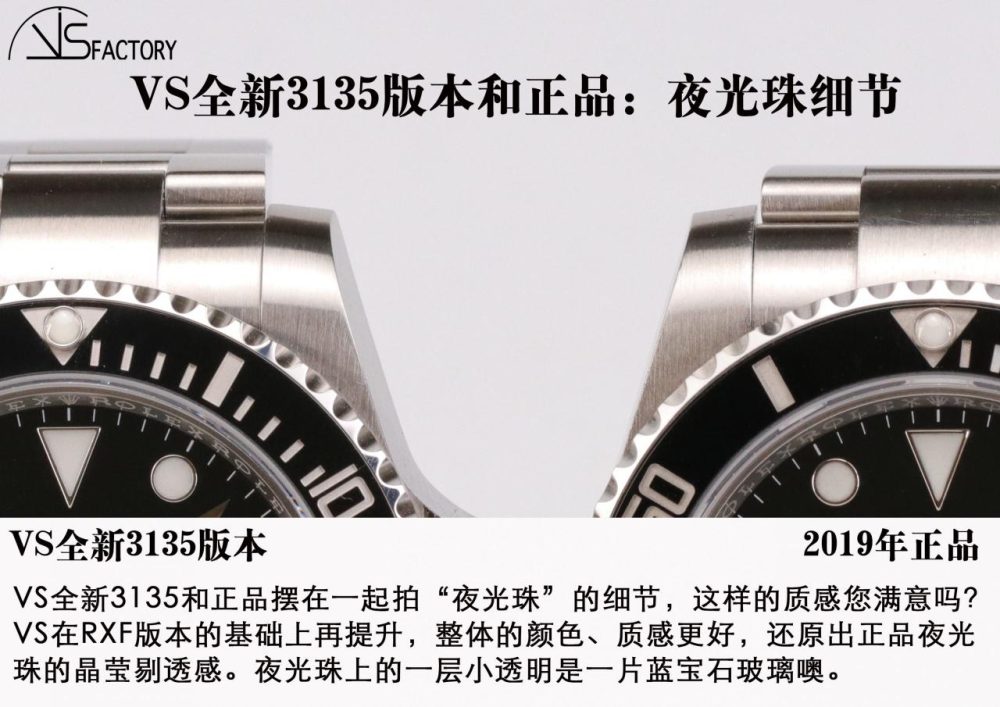 VS 全新 3135 水鬼 SUB 在 RXF/XF 版本(有興趣可以看看 RXF/XF 版本的細節評測)基礎上的提升,把細節做得更細緻。 大家所關心的,能給大家說的明白的,先給大家講以下這些: