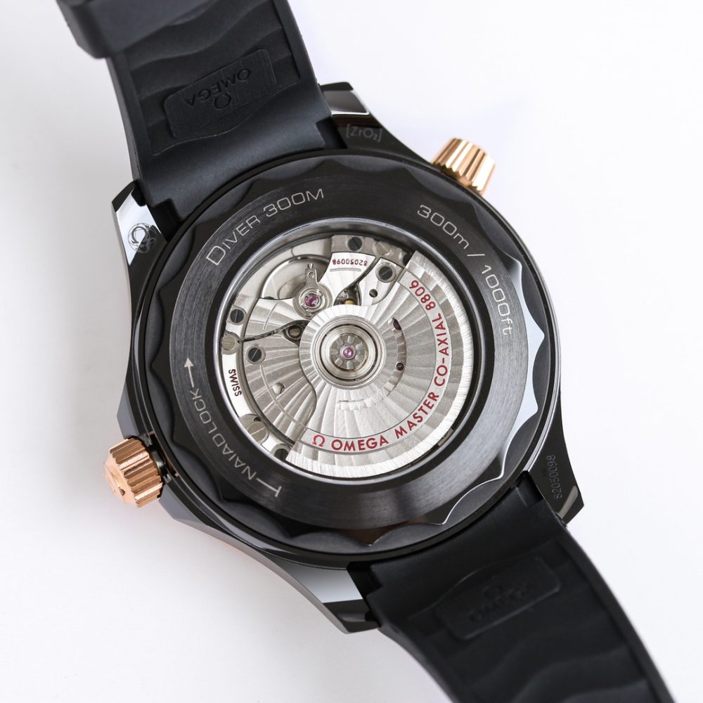 OR厂推出欧米茄海马系列300米高仿腕錶新品——墨黑款。这款復刻手錶采用黑色氧化锆陶瓷打造43.5mm表壳与表圈,配备波纹表盘及夜光刻度。透过蓝宝石表背可见8806机芯运转,其三大独家技术确保陶瓷壳直接螺纹组装,提升高仿手錶防水性能与操作手感,成为高端高仿腕錶市场的精湛力作。