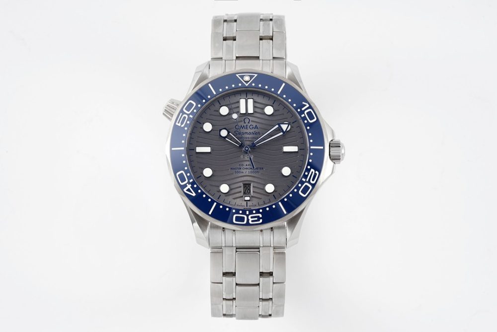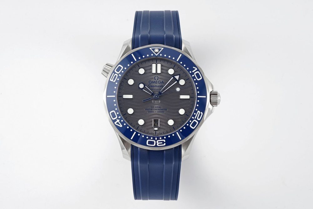 表徑 42MM,弧拱形雙面防反光藍寶石玻璃表鏡,表盤採用拋光陶瓷製成,並用鐳射攜刻了波紋圖案,鏤空指標與浮雕刻度經過鍍銢處理,並且覆有 SUPER-LumiNova 夜光塗層。