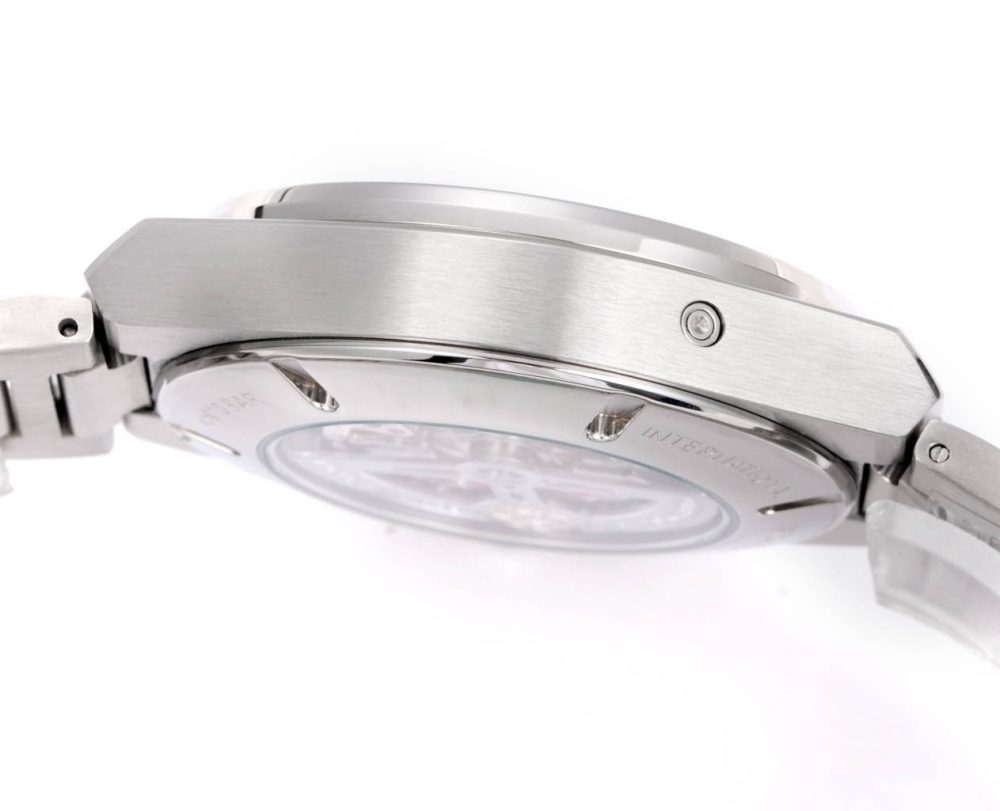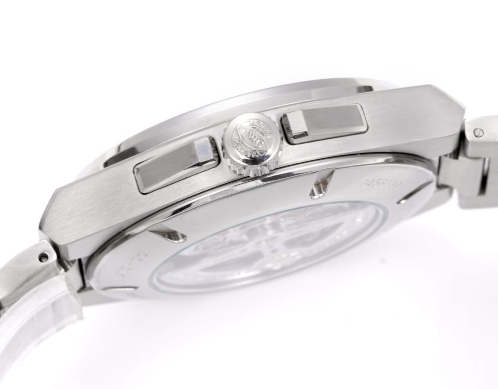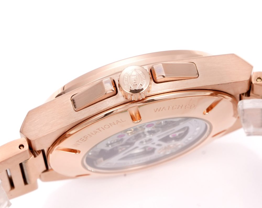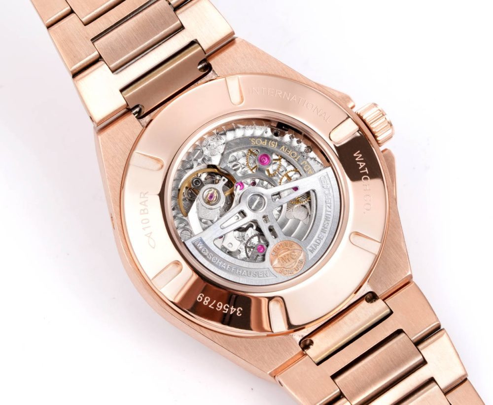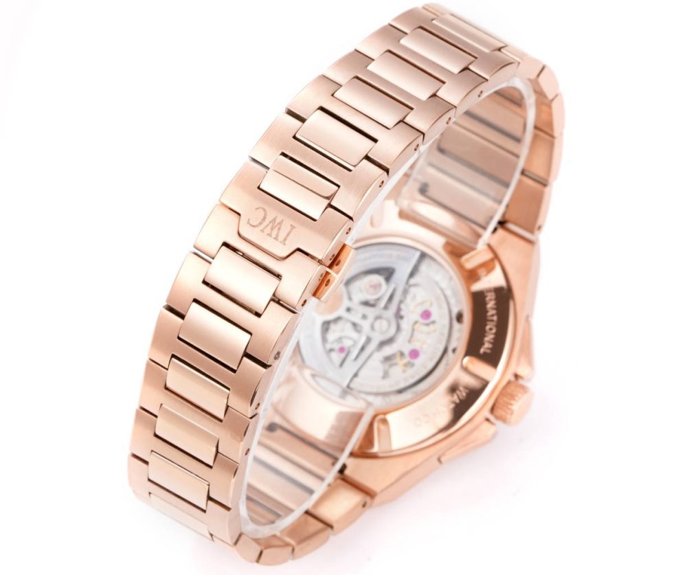 4:【錶帶表扣】隨錶配備了一體化 H 型鏈節錶帶,並與殼體飾面採用一樣的打磨裝飾,表扣刻有“IWC”經典標誌,在整理比例設計跟靈活性上,讓腕表實現更好佩戴的上手體驗。