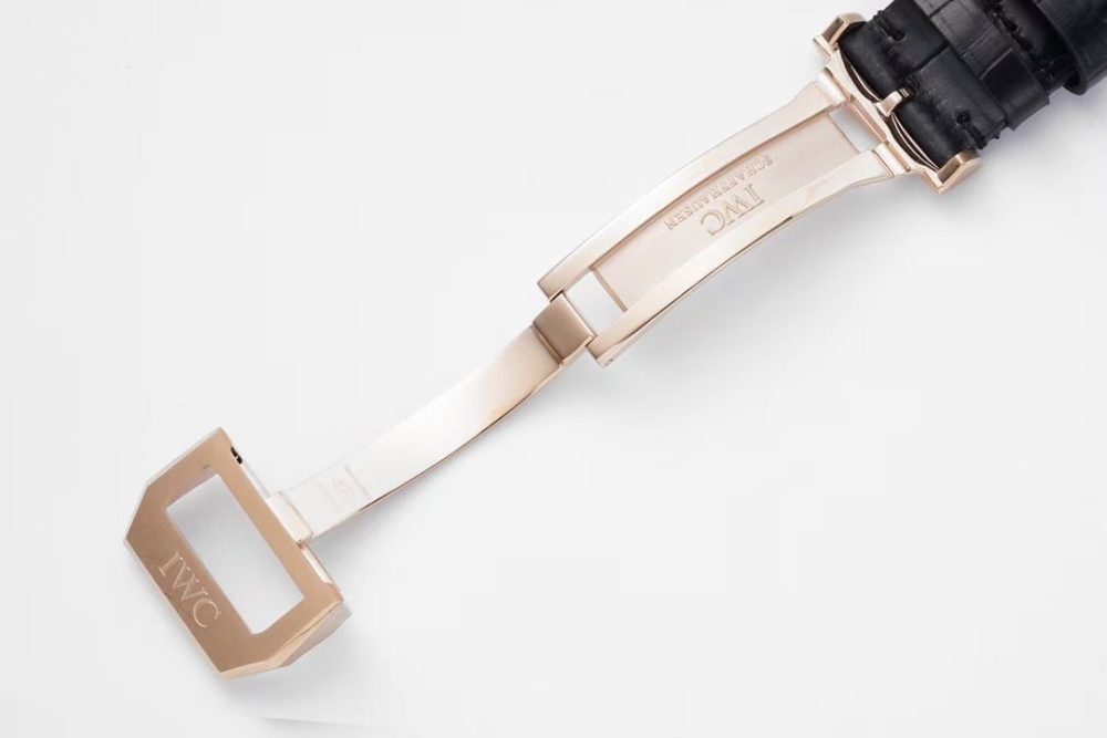 十幾個面齊全,義大利牛皮,搭配 IWC 經典摺疊表扣。