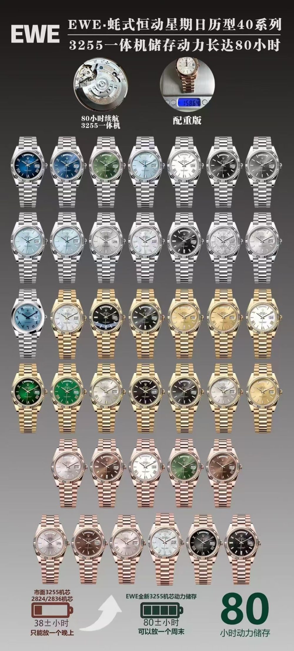 EWE推出勞力士星期日曆型復刻手錶新品,精準再現經典元首之表風範。此款新品腕表搭載定制一體機芯,具備卓越的抗震抗磁性能與80小時動力儲存。EWE嚴格遵循原版工藝,採用貴金屬鍛造158克表殼與標誌性元首型表鏈,並提供多種奢華錶盤選擇。這款EWE勞力士星期日曆型復刻手錶融合雙顯功能與100米防水設計,是追求頂級工藝與經典設計的絕佳選擇。