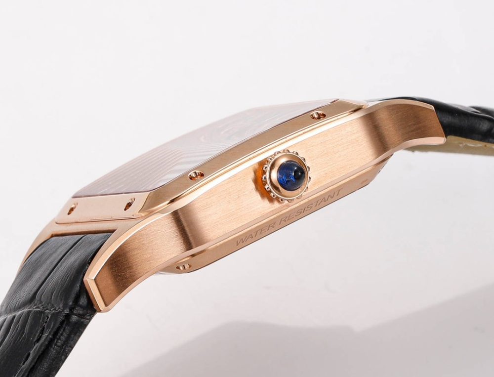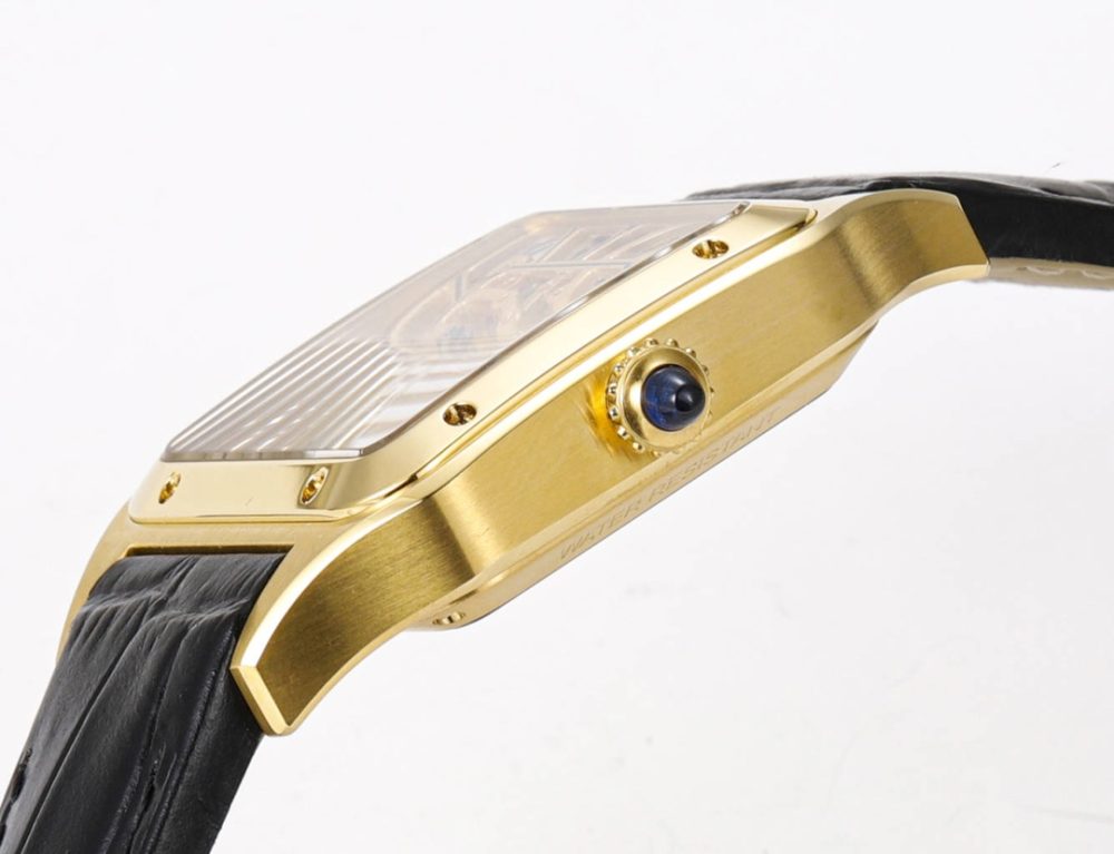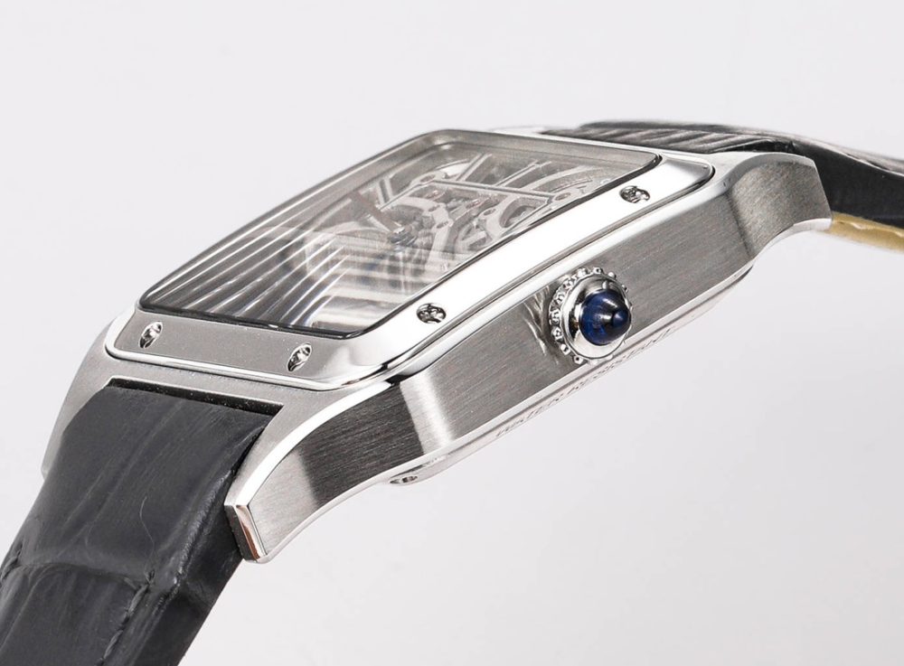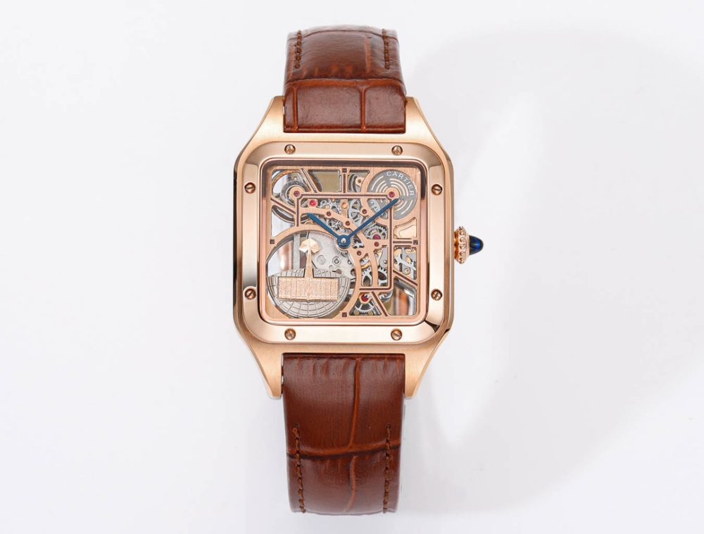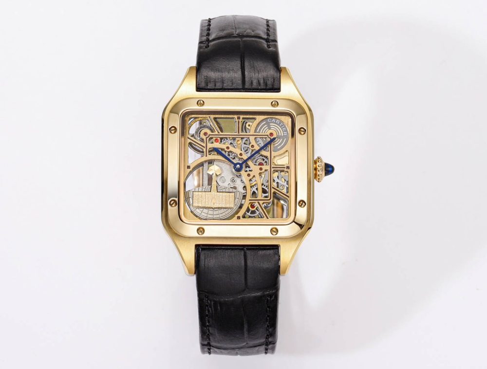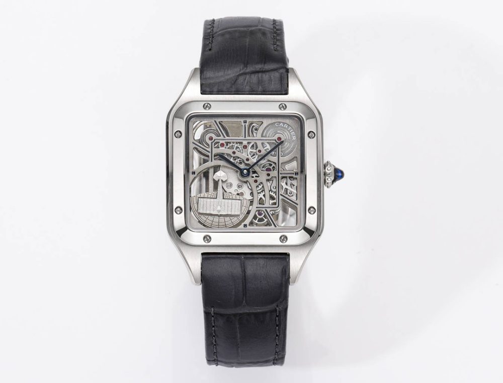 卡地亞山度士鏤空系列推出高仿腕錶,這款復刻手錶以卡地亞山度士原版為藍本,由專櫃設計師參與打造。它採用瑞士改制機芯,實現真鏤空錶形,配備原廠進口鱷魚紋錶帶與18k金鍍扣。細節處同步藍寶石鏡面、燒鋼藍指針及鑲嵌藍寶石錶冠,底蓋徽標精準還原。此高仿手錶搭載獨特珍珠陀設計,重現經典飛行器造型,確保一表一碼,品質遠超普通復刻手錶市場產品。