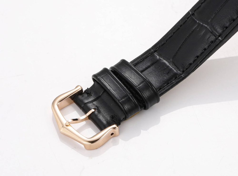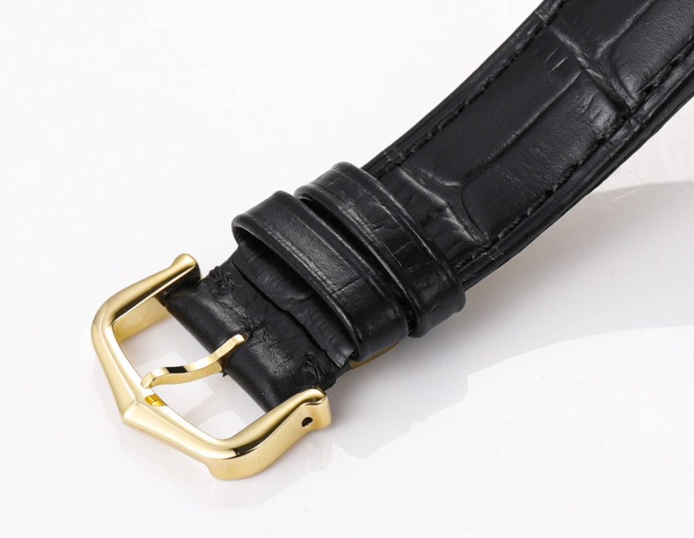 採用原廠進口鱷魚紋錶帶,18k 玫瑰金/黃金鍍扣