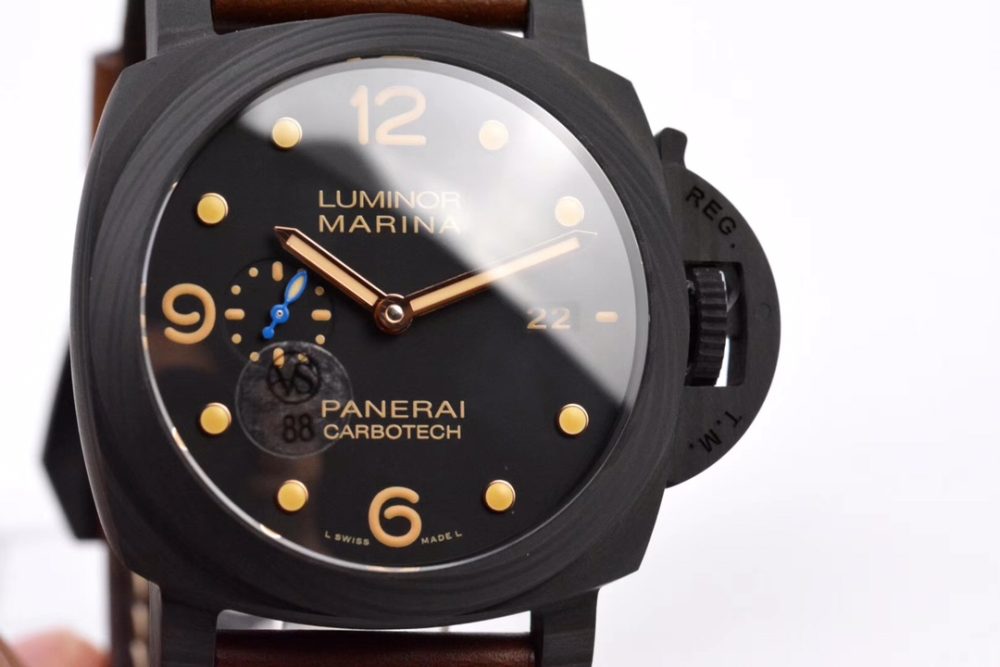 VS厂推出的这款高仿腕表是沛纳海LUMINOR 1950系列PAM661男士腕表的精仿复刻手錶。它采用7层碳纤维表壳与PEEK聚合物高压制成,配备复古夜光字钉与蓝色秒针。搭载VS厂自产Cal.P.9010机械机芯,确保精准走时。这款高仿手表完美再现原作的军表风范,是复刻手錶爱好者的优选。