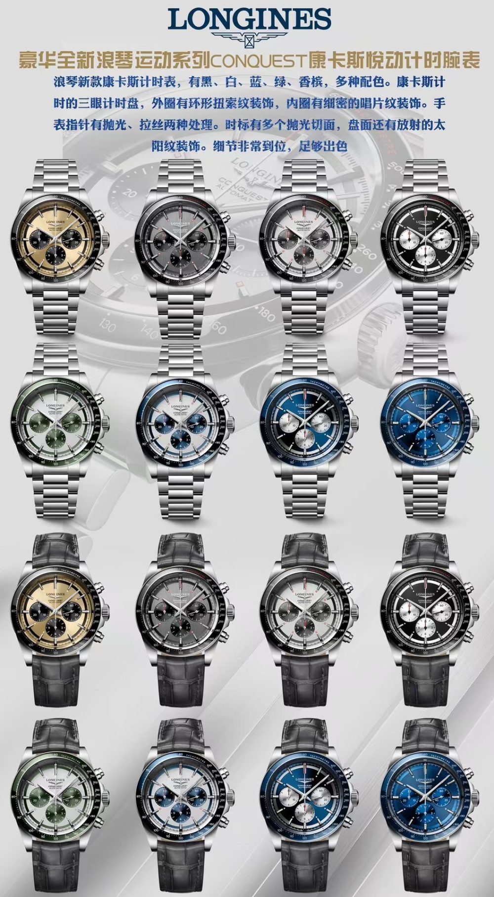 【新品】浪琴 LONGINES-浪琴 康卡斯 悅動憑借其獨特的設計,實用的功能和舒適的佩戴體驗,成為了一款備受推崇的精品時計。