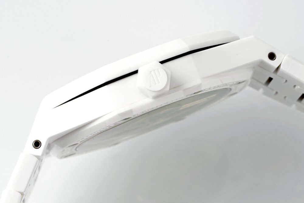 APS新品推出愛彼15500全陶瓷款式高仿手錶,完美結合陶瓷材質與Cal.4302一體化機械機芯。這款復刻手錶延續皇家橡樹經典美學,憑藉高硬度、輕量化及抗過敏特性,展現卓越佩戴體驗。其精密陶瓷錶殼與錶帶採用複雜燒結工藝,細節處理精湛,彰顯現代機械手錶的工藝標杆,是追求頂級品質的機械手錶愛好者的首選。