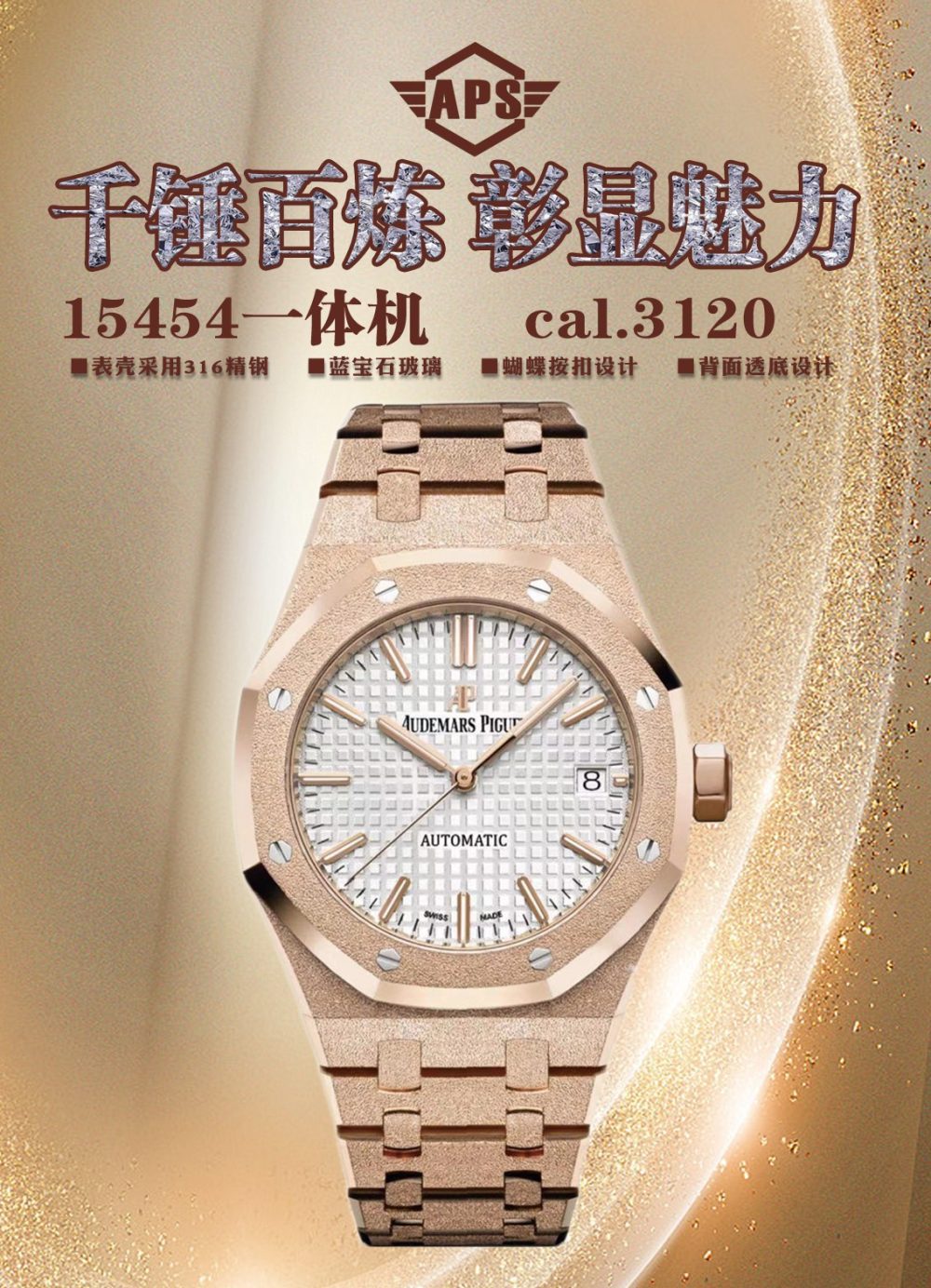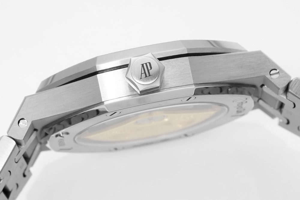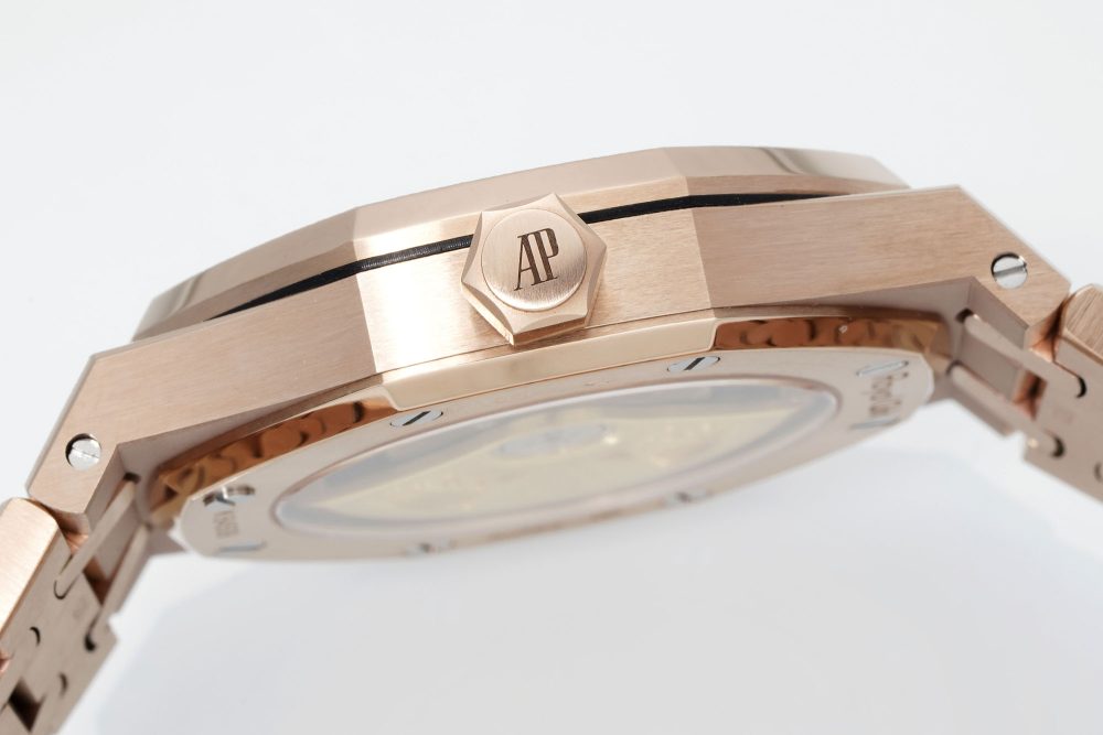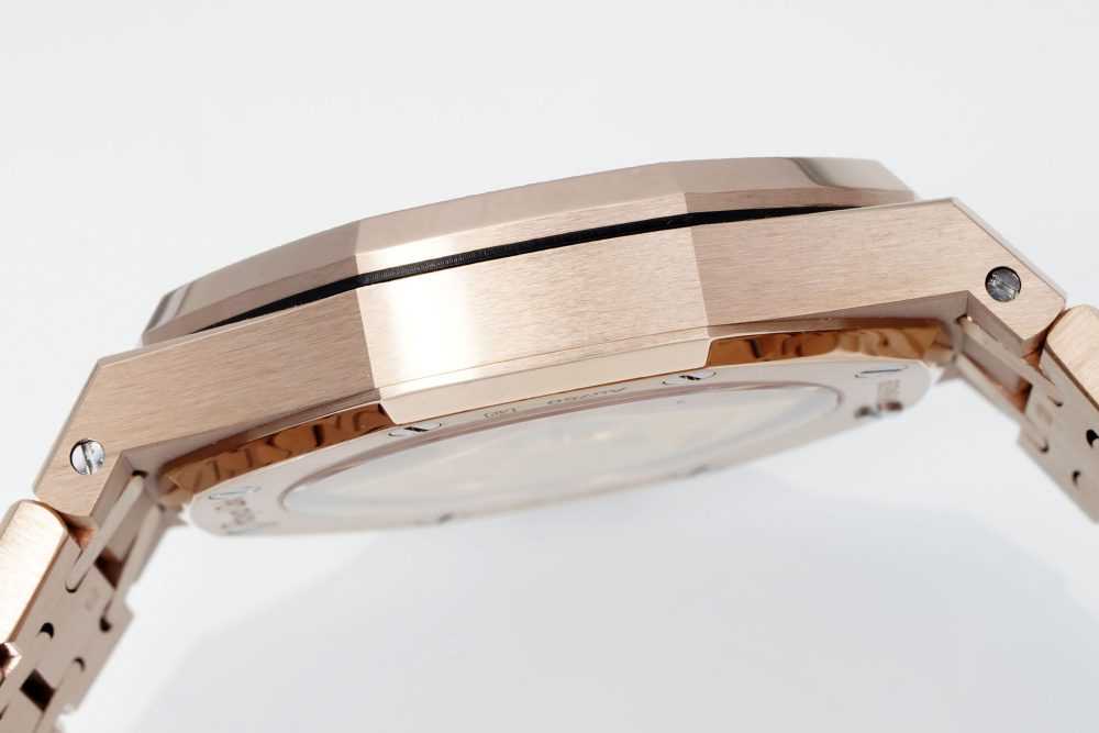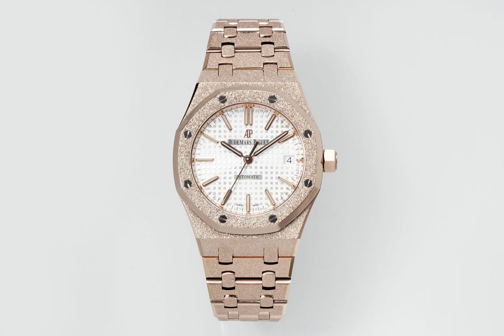探索愛彼皇家橡樹15454霜金高仿腕錶的精湛工藝。這款高仿手錶完美復刻了品牌標誌性的霜金技術,亦稱佛羅倫薩飾面。通過細緻的捶打與拋光,機械手錶表面折射出鑽石般光澤,展現復刻手錶在細節上的極致追求。每一只高仿腕錶都耗時費神,確保其視覺效果與質感物有所值,是鐘錶愛好者的精緻之選。