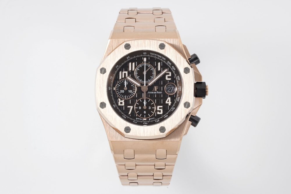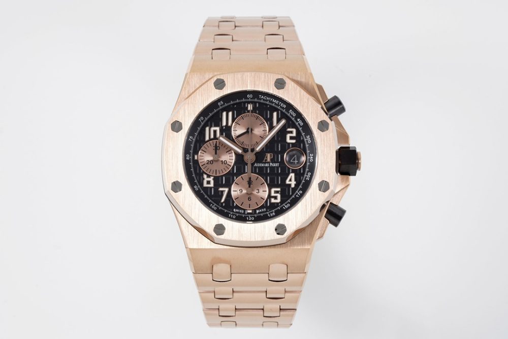 APF廠推出的高仿手錶——愛彼皇家橡樹離岸系列鋼帶版,被譽為封頂之作。這款高仿腕錶搭載精準的3126計時機械機芯,其最大突破在於獨家實現了原裝工藝的鬆動頭粒設計,成功打破了市面同類機械手錶鋼帶無法活動的壁壘,使錶帶能更加貼合手腕,重現了愛彼經典的佩戴舒適感與卓越工藝。