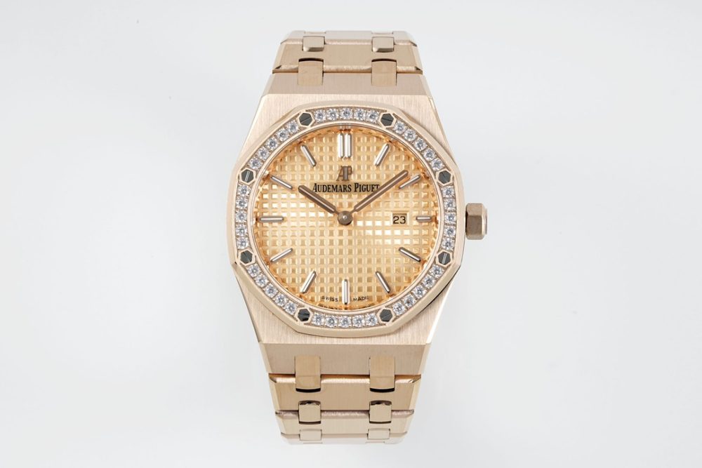 ZF廠推出精仿手錶,復刻手錶愛彼皇家橡樹系列67651OR女士腕表。這款高仿腕錶以正品開模,採用瑞士ETA石英機芯確保走時精準。33毫米錶殼經CNC打磨,搭配鑲鑽表圈與精緻鏈帶,展現高仿手錶的卓越工藝。作為一款頂級復刻手錶,其鐫刻格紋錶盤與螢光時標完美還原原版風采,是追求品質的機械手錶愛好者的理想之選。