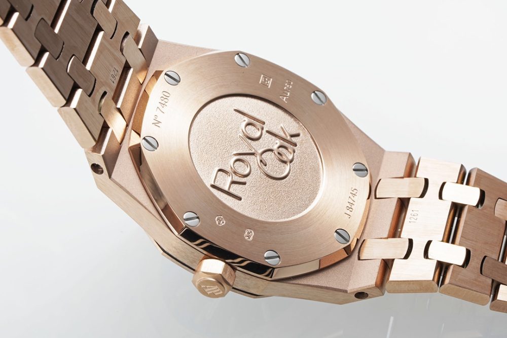 腕表為密閉表底,表底上鐫刻皇家橡樹系列的英文名稱“Royal Oak”字樣。