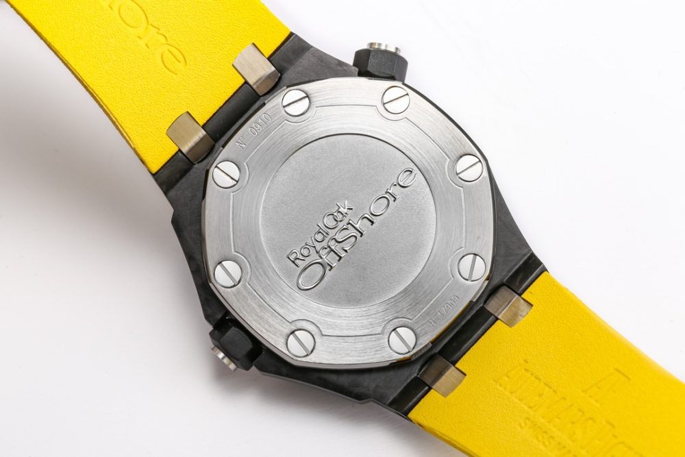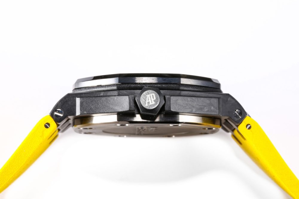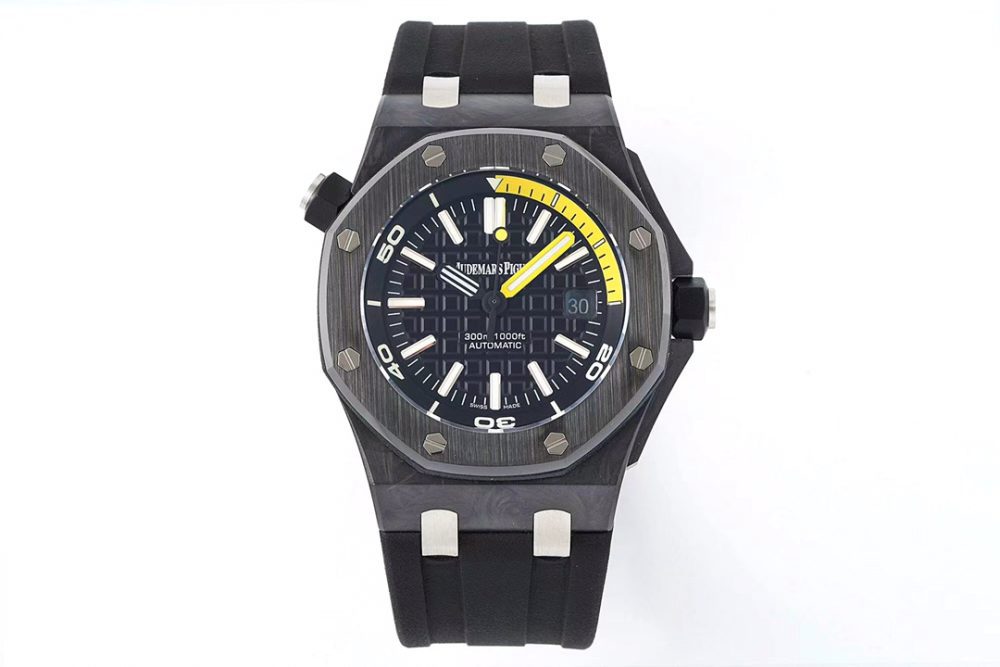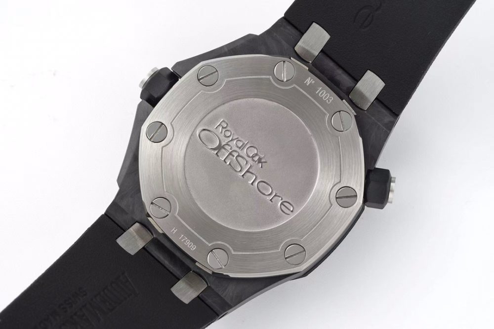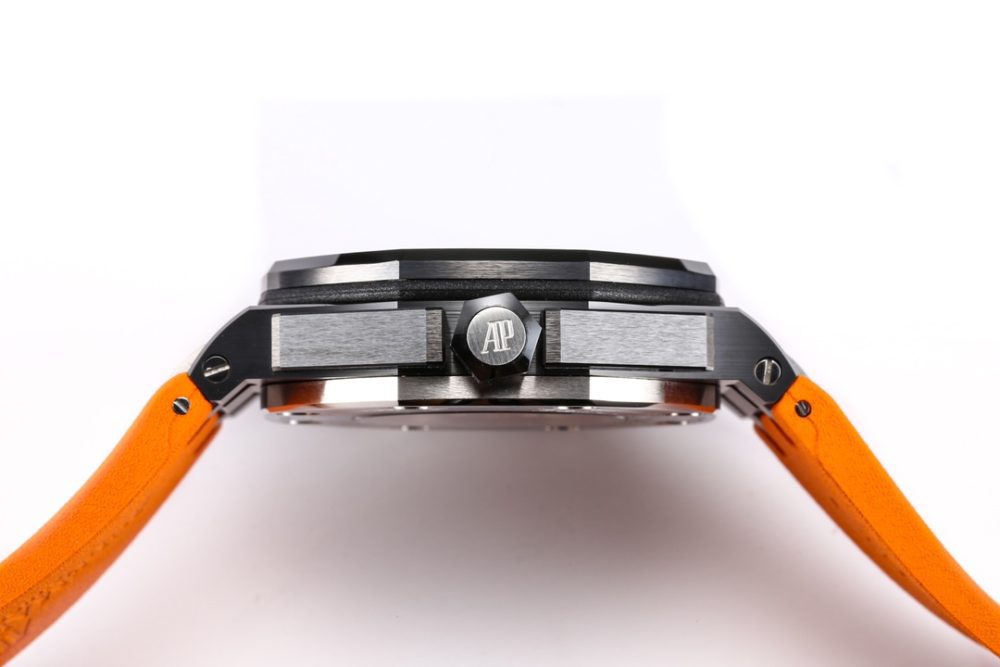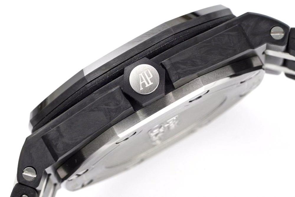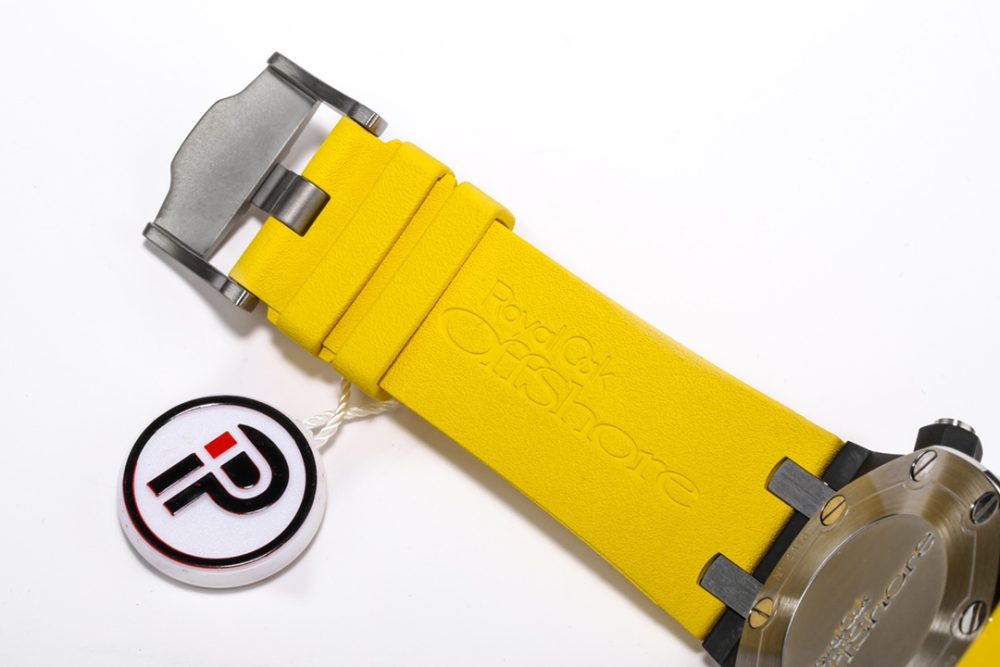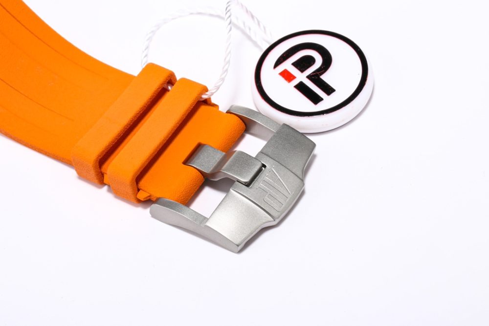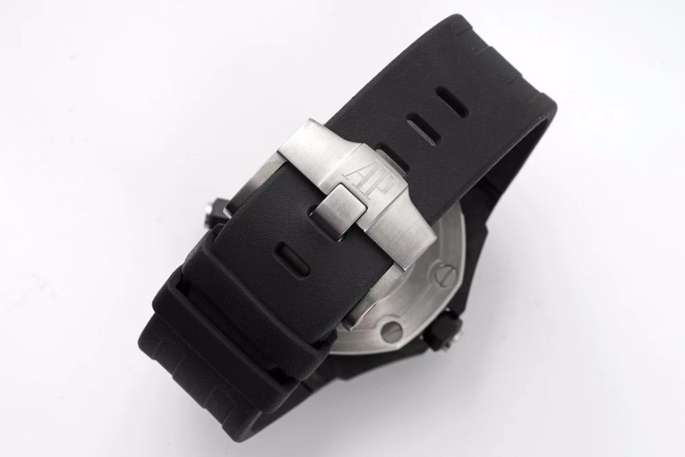 4.橡膠錶帶搭配鈦合金針扣和原裝一致,非常簡單實用,針扣上“AP”經典 LOGO 雕刻的也是十分有力度