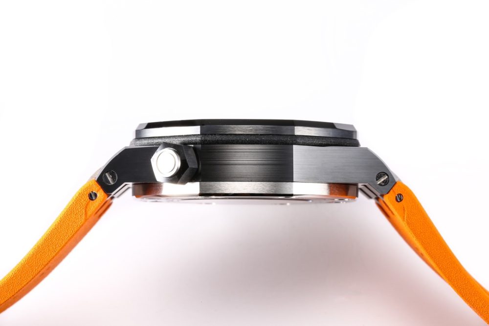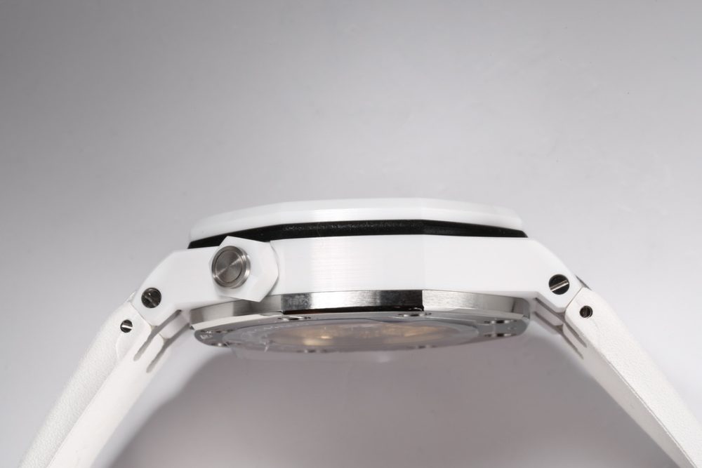 1.表殼採用全陶瓷材質並做了拉絲處理,相比精鋼材質的拉絲,效果更深、更立體。 側面棱角分明,角度鋒韌。 陶瓷表殼,陶瓷外圈,陶瓷表冠,具有高硬度和抗划傷性。 陶瓷材料為產品大大加分,使這款表的外觀更加的硬朗和華麗