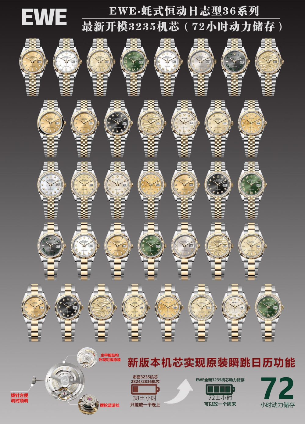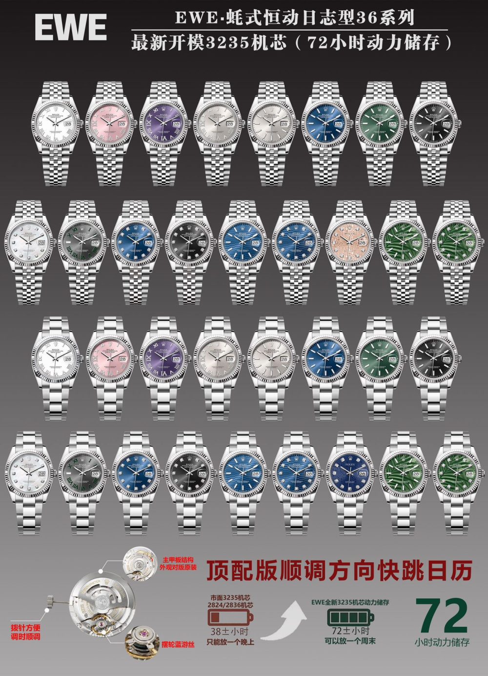 EWE 廠 新品🔥🔥mm 勞力士原版開模 3235 自動機械機芯日誌型系列 126233 男士日誌型腕表,36 毫米直徑,11.7 毫米厚度、研發耗時一年,原版 1 比 1 開模。