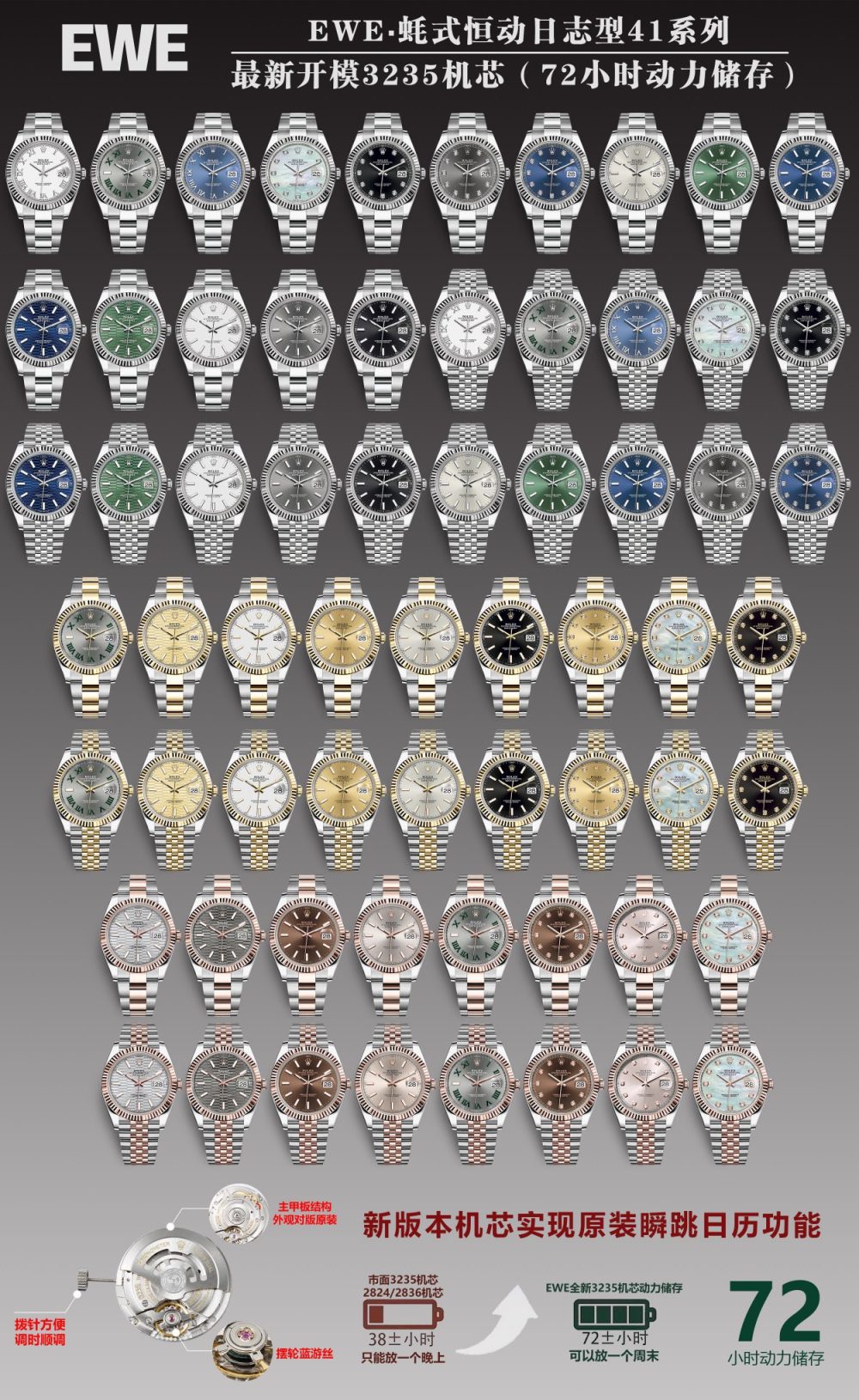 EWE🔥🔥mm 勞力士原版開模 3235 自動機械機芯日誌型系列 126331 男士日誌型腕表,41 毫米直徑,11.7 毫米厚度、研發耗時一年,原版 1 比 1 開模。