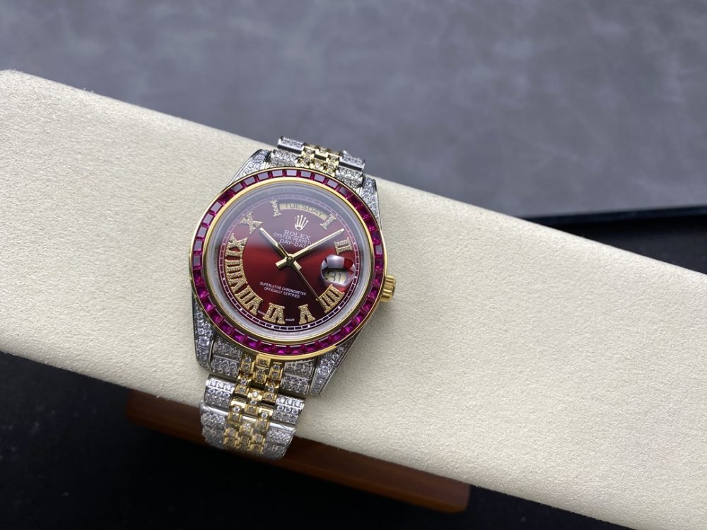【表殼】腕表尺寸 40mm。 表圈,表殼,表鏈都密集鑲滿最頂級的施華洛世奇美鑽。 盡量還原正品奢華至極的無敵質感。