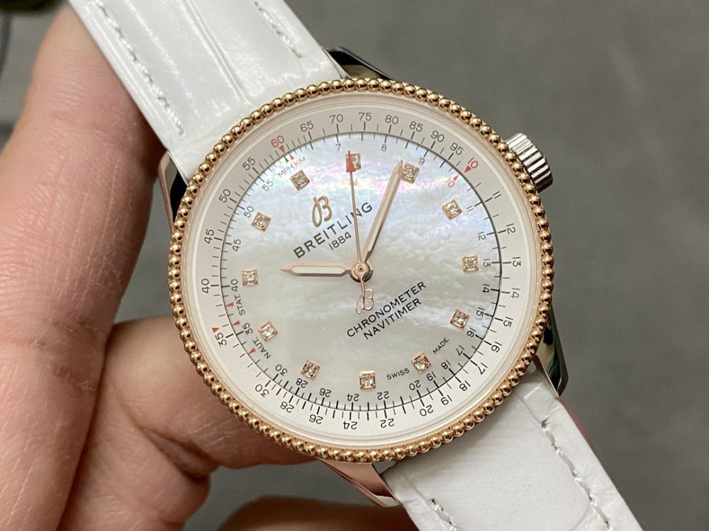 BLS出品的這款百年靈女款航空計時自動腕表,是一款精緻典雅的高仿腕錶。這款復刻手錶完美融合經典設計與現代工藝,採用35毫米316L精鋼錶殼與藍寶石鏡面,搭載SW200-01等自動機械機芯,確保精準走時。作為一款高仿手錶,它提供銀色、藍色及鑲鑽貝母等多種錶盤選擇,並配備牛皮或鱷魚皮錶帶,精細還原了原裝質感,是追求高端機械手錶風範的出色選擇。
