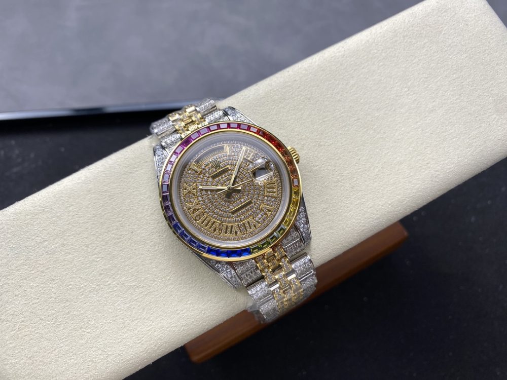 探索奢華的勞力士星期日誌精仿手錶,這款定製滿鑽的個性特別款腕錶極致還原經典。全表密鑲頂級施華洛世奇鑽石,搭配904L蠔式鋼錶帶與穩定自動機芯,尺寸40mm,盡顯尊貴氣質。以親民價格體驗非凡工藝,適合追求獨特風格的錶友,是身份與品味的完美象徵。