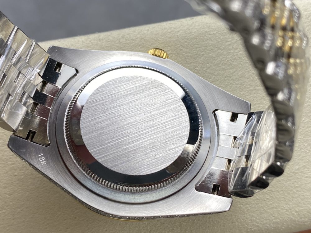 【錶帶】採用最新 904L 蠔式鋼打造,平整的鏈節組成,極其堅固,表鏈全身也整齊縝密的鑲滿美鑽,效果光華四射。