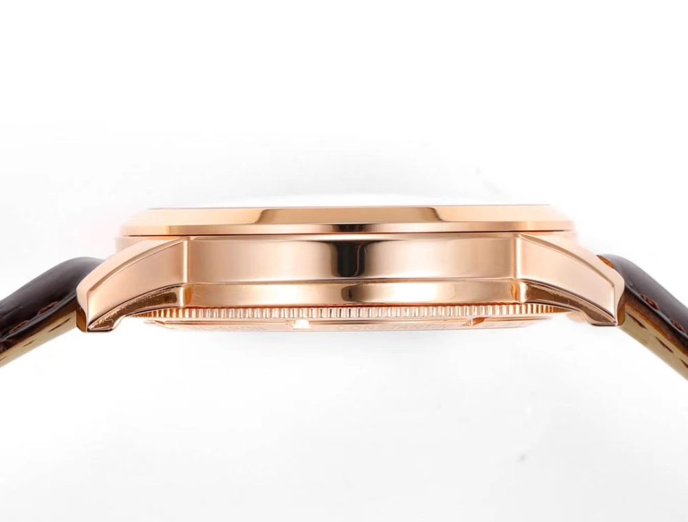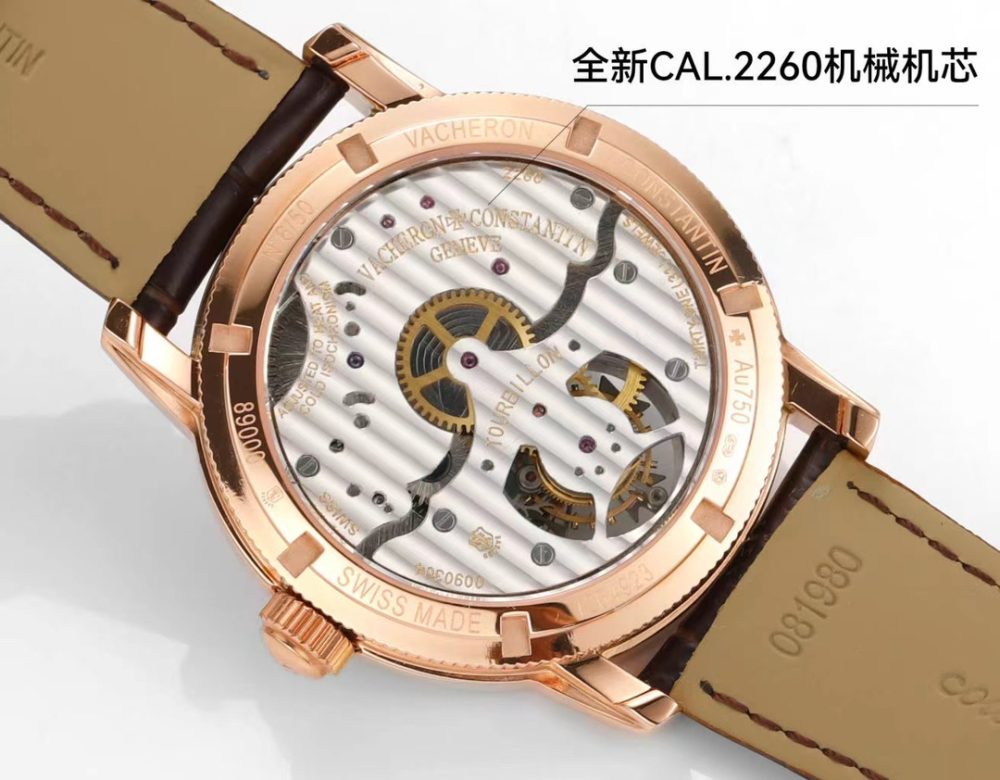 這款高仿腕錶精準復刻了江詩丹頓Patrimony傳承系列Traditionnelle動能陀飛輪腕錶。它搭載了全新Cal.2260機械手錶機芯,不僅在外觀上高度還原,更在技術上實現突破,其陀飛輪結構達到與原廠一致的振頻。這款高仿手錶代表了國產復刻手錶在機械工藝與美學設計上的顯著飛躍,具備媲美原作的質感與複雜功能。