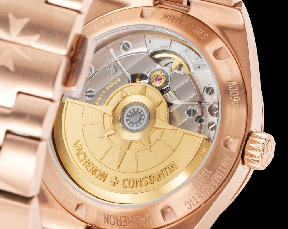 4⃣️透過透明表底蓋可欣賞到經過精心雕琢的豐富裝飾細節。