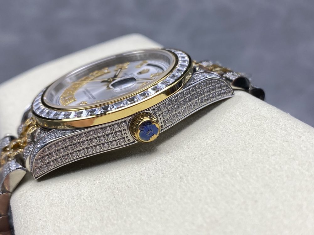 探索奢華精仿手錶世界,這款勞力士定製滿鑽星期日誌個性特別款腕表極致耀眼。它完美還原經典滿天星設計,通體密鑲頂級施華洛世奇鑽石,從表殼到錶帶盡顯璀璨光華。採用堅固904L蠔式鋼與穩定自動機芯,尺寸適中,將經典與創新融為一體。這款精仿手錶以非凡工藝打造,是彰顯獨特品味與尊貴氣質的震撼力作,為表友提供奢華體驗。