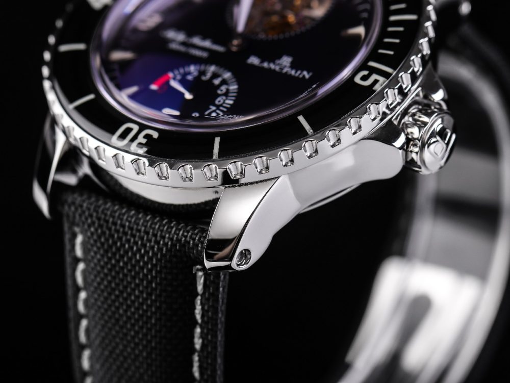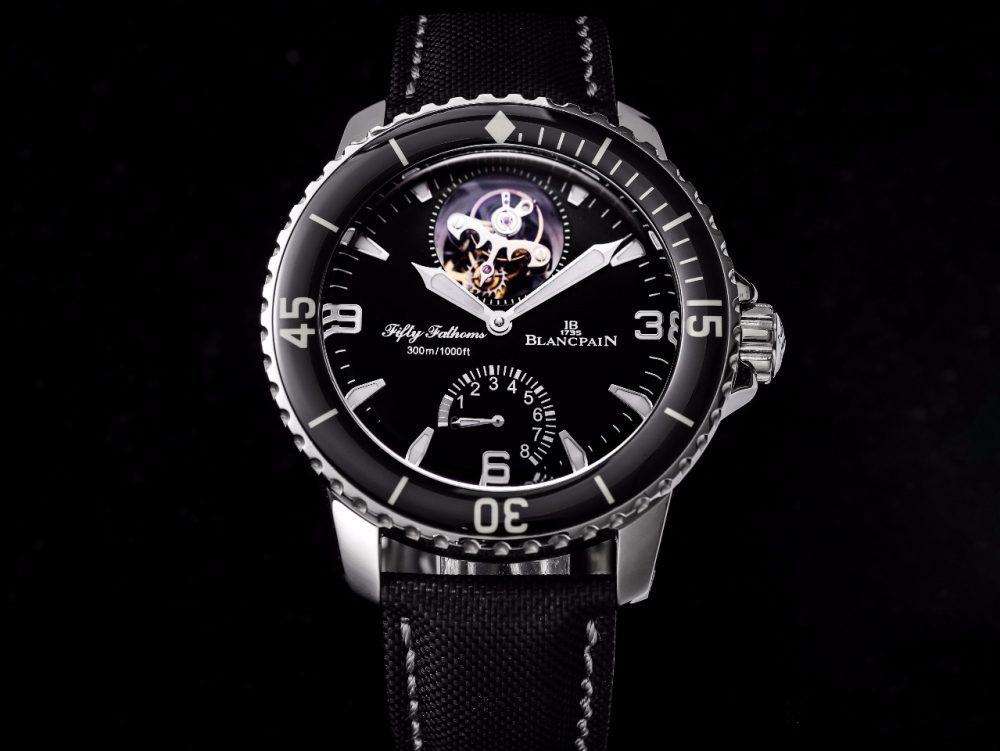 45mm 直徑,藍寶石倒計時圈口,雙層藍寶石拱形鏡面,整個正面都是完全抗刮的,