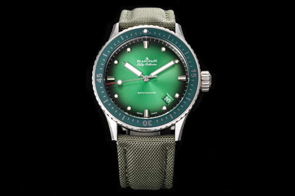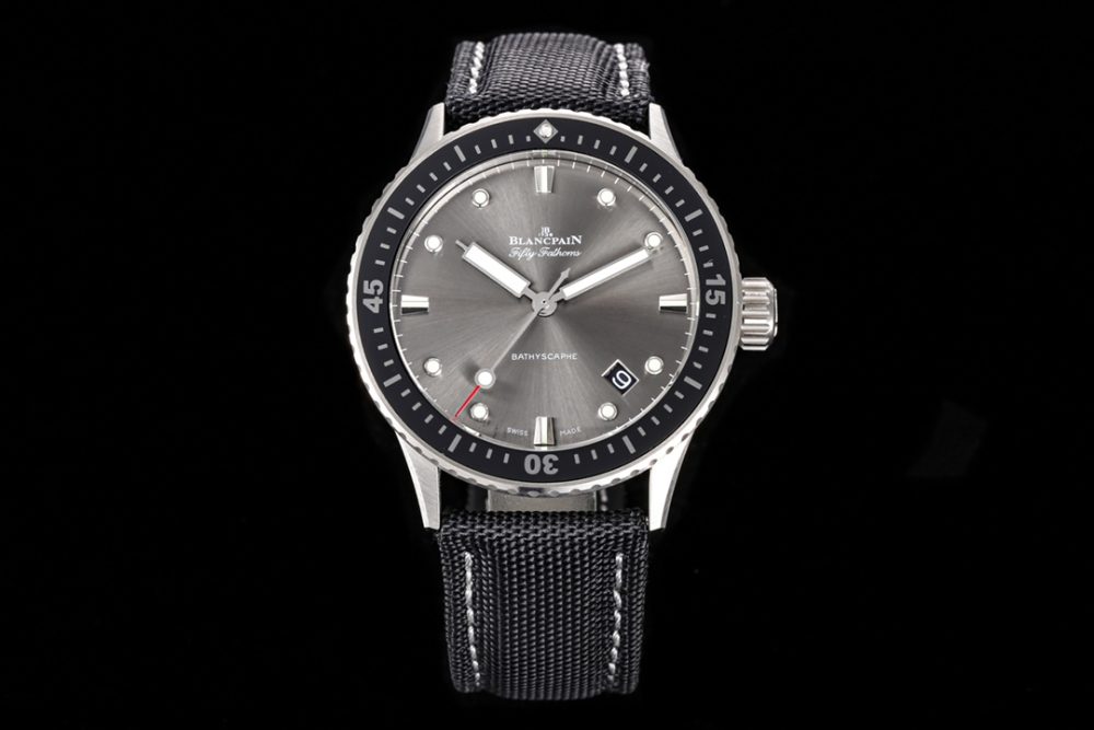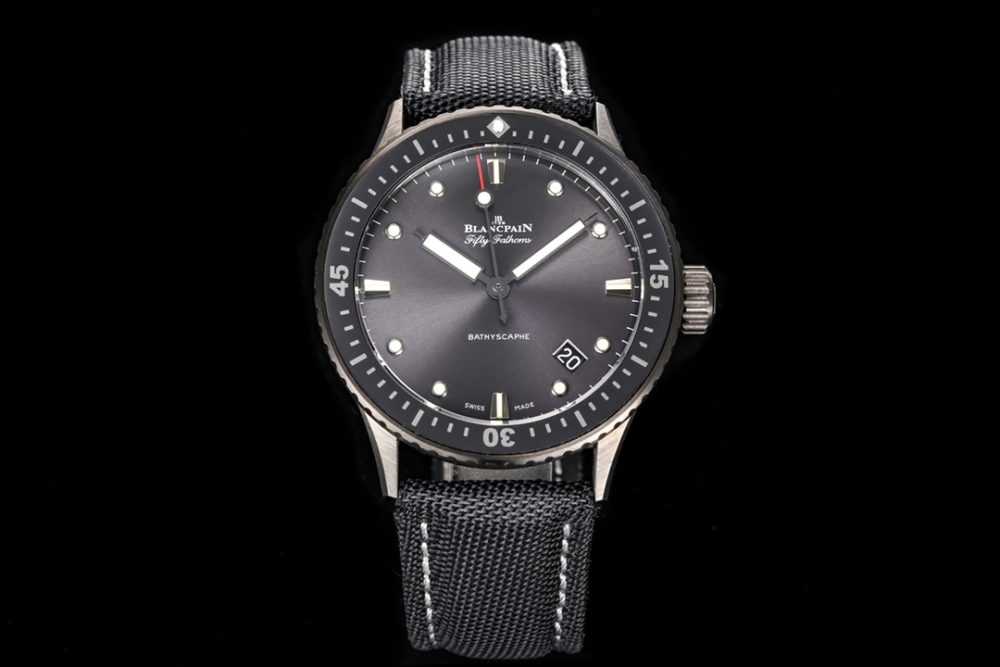 這款寶珀五十尋系列43.6mm男士腕表是一款高品質的復刻手錶,其表殼採用高科技緞面灰色陶瓷,堅固耐磨。內部搭載改裝自杭州7系機芯的機械手錶機芯,外觀極力還原原裝Cal.1315機芯的細節。這款高仿手錶在表盤夜光、表扣打磨及防水性能上均精益求精,整體工藝精湛,是一款細節出眾的高仿腕錶,並附贈進口氟橡膠錶帶。