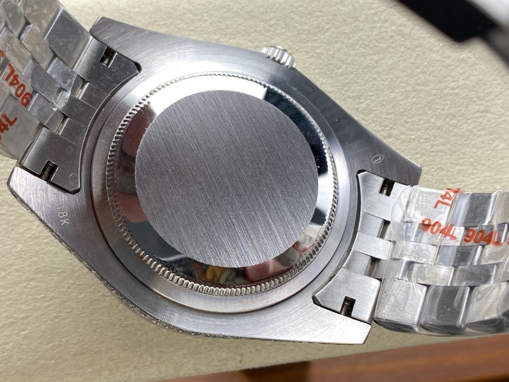 【錶帶】採用最新 904L 蠔式鋼打造,平整的鏈節組成,極其堅固,表鏈全身也整齊縝密的鑲滿美鑽,效果光華四射。