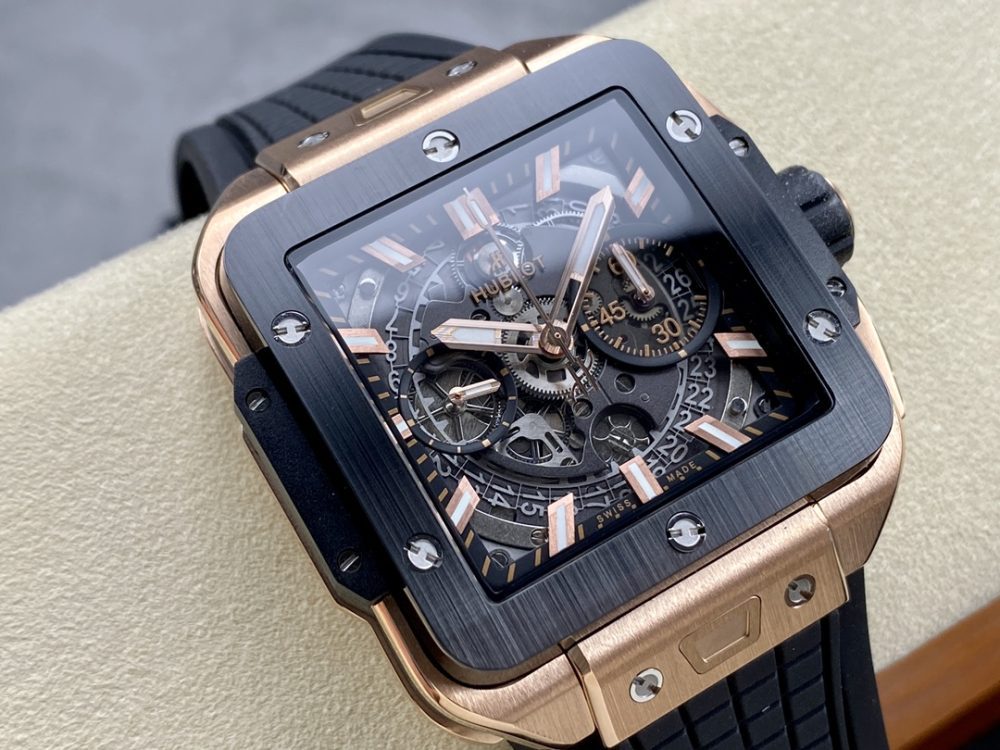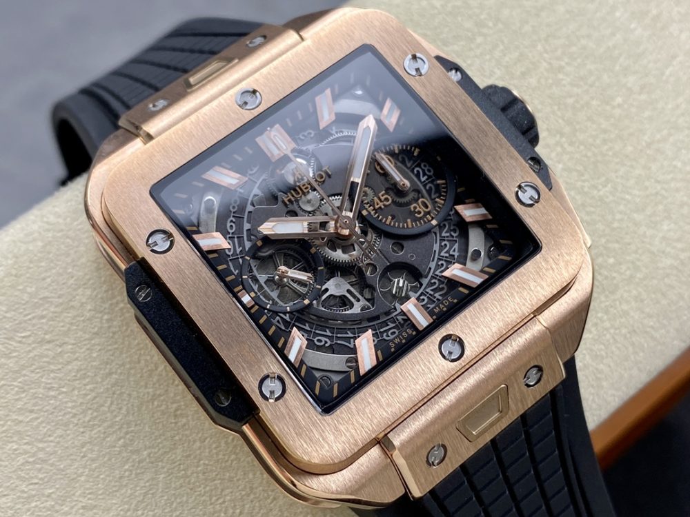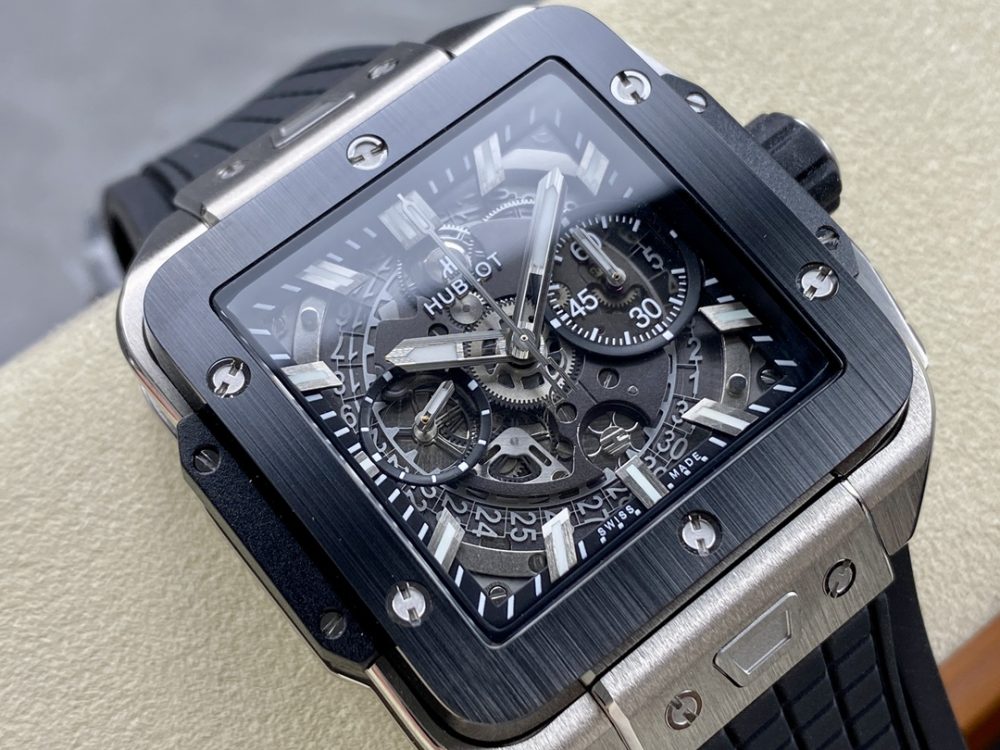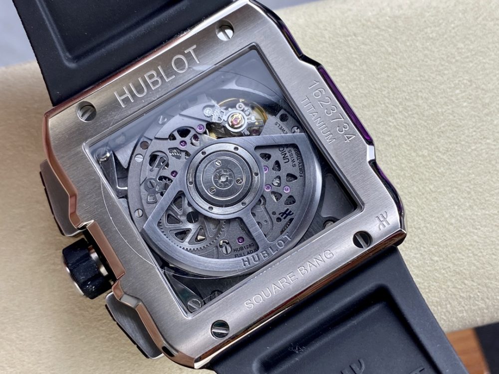 BBF廠推出HUBLOT宇舶表SQUARE BANG UNICO腕表的頂級復刻手錶。這款高仿手錶以五級鈦金屬打造,搭載獨家恆寶專屬HUB1280機芯,配備藍寶石字面與快拆系統。其全鏤空設計將機械手錶的運轉奧秘一覽無遺,堪稱宇魄方形大爆炸系列的巔峰之作,為玩家提供天花板級別的品鑒體驗。