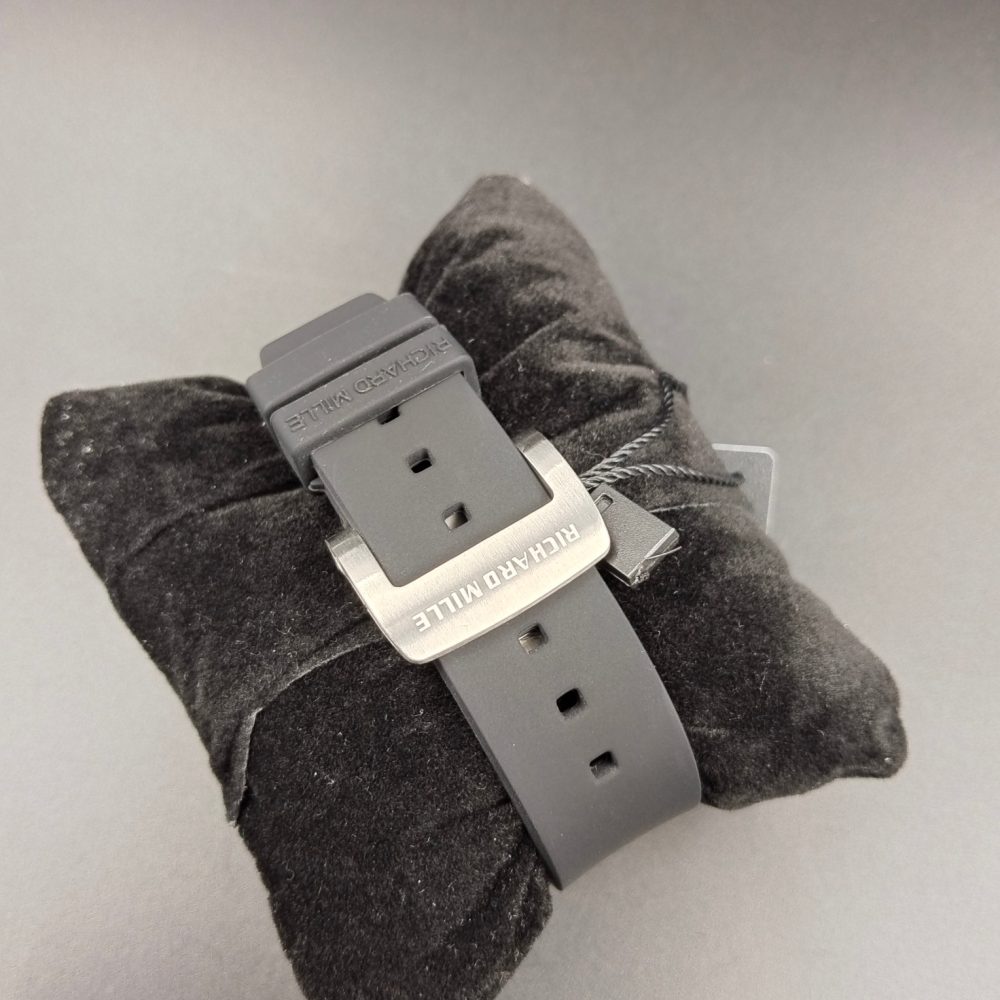 機芯:Richard Mille 自主開發的獨特專利轉子系統 擁有手工磨砂和黑色 PVD 塗層的鈦基板和橋樑