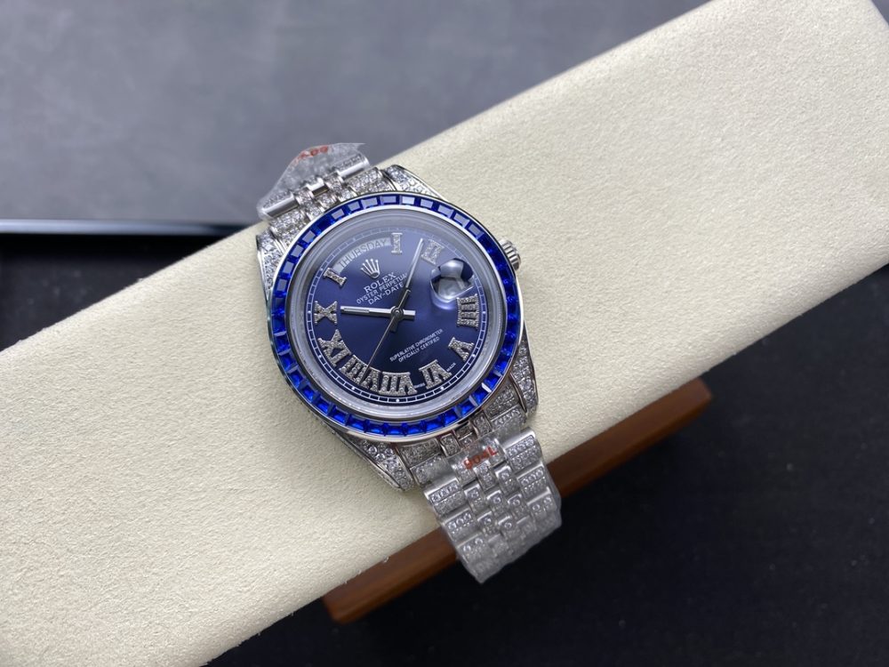 【表殼】腕表尺寸 40mm。 表圈,表殼,表鏈都密集鑲滿最頂級的施華洛世奇美鑽。 盡量還原正品奢華至極的無敵質感。