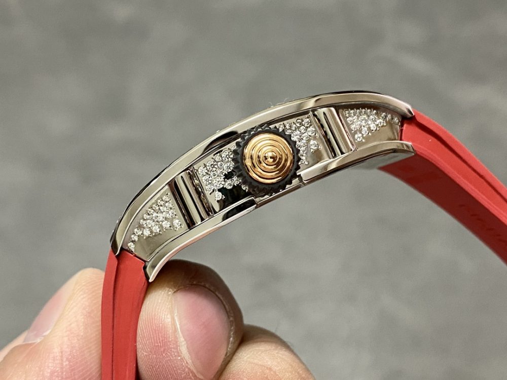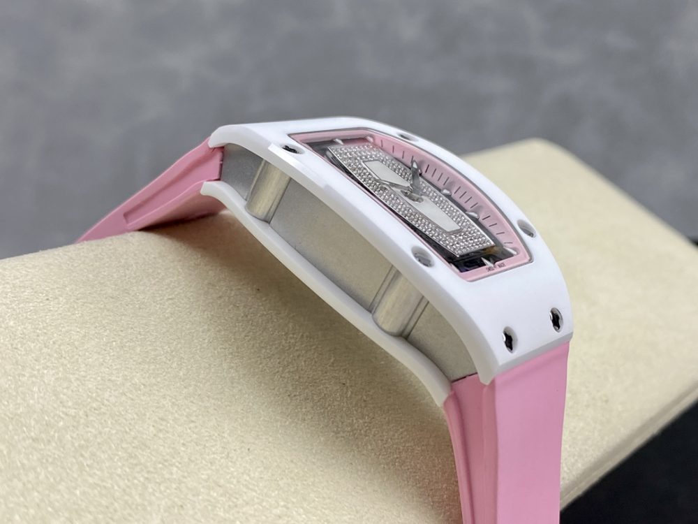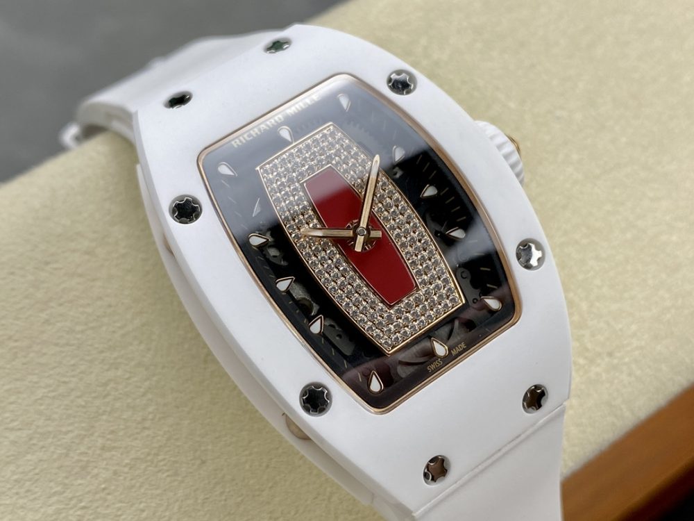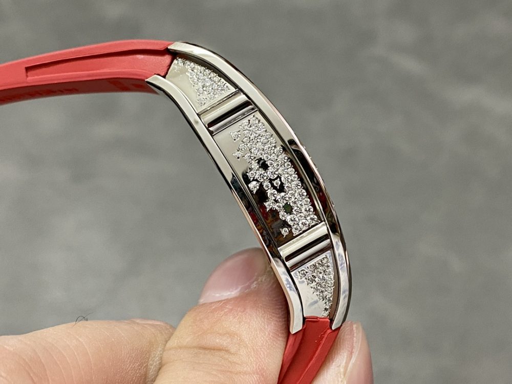 BBA厂推出的这款高仿手錶,精准復刻了理查德米尔RM07-01红唇腕錶。作为一款精密的機械手錶,它采用原版ZTA陶瓷表壳与定制机芯,1:1还原正品尺寸。这款高仿腕錶配备蓝宝石镜面与进口氟橡胶表带,细节处更以手工镶嵌工艺打造,致力于为爱好者提供高品质的復刻手錶体验。