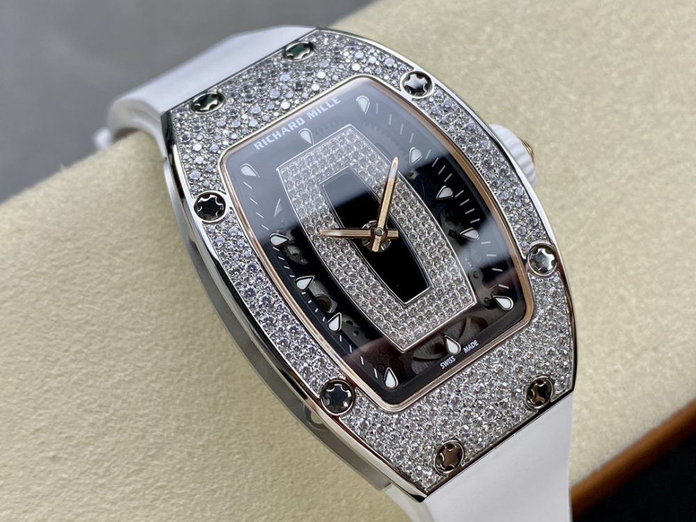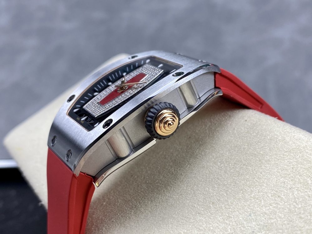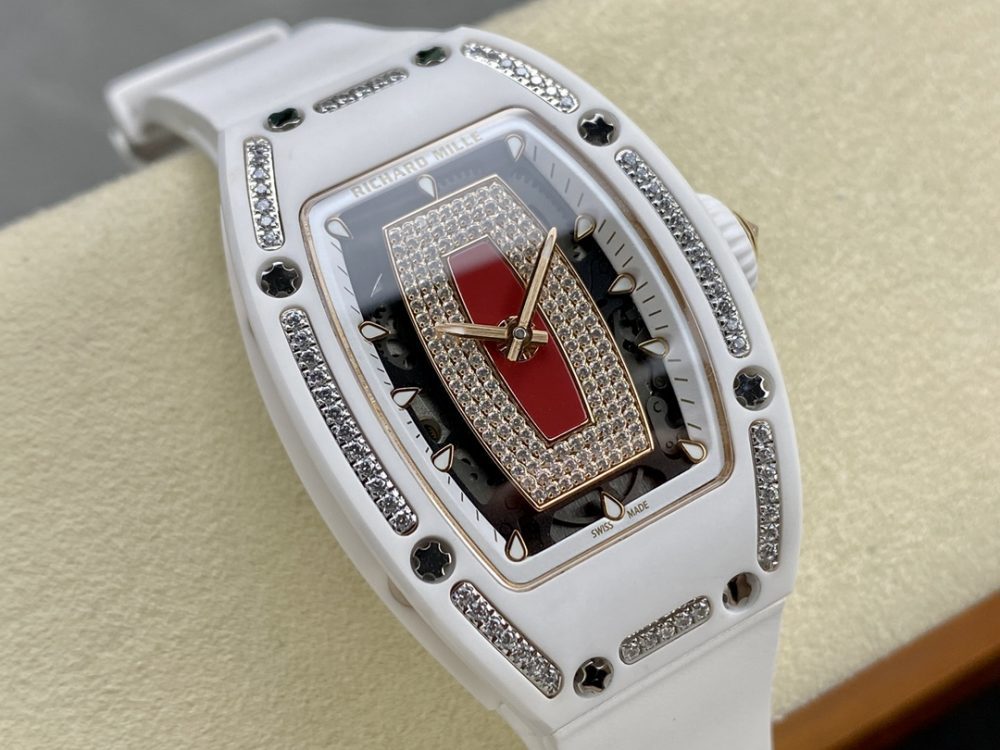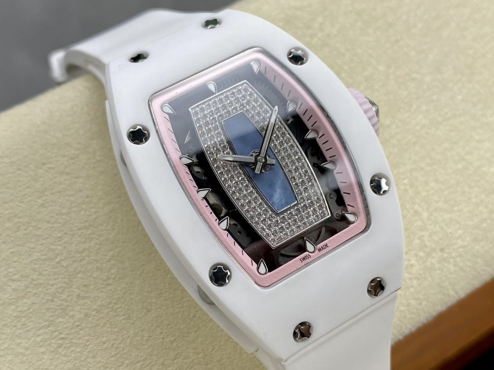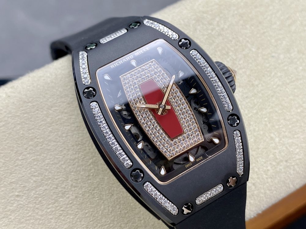 BBA厂推出的这款高仿手錶,精准復刻了理查德米尔RM07-01红唇腕錶。作为一款精密的機械手錶,它采用原版ZTA陶瓷表壳与定制机芯,1:1还原正品尺寸。这款高仿腕錶配备蓝宝石镜面与进口氟橡胶表带,细节处更以手工镶嵌工艺打造,致力于为爱好者提供高品质的復刻手錶体验。
