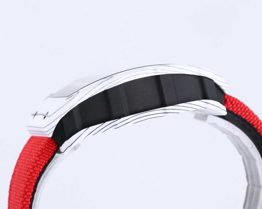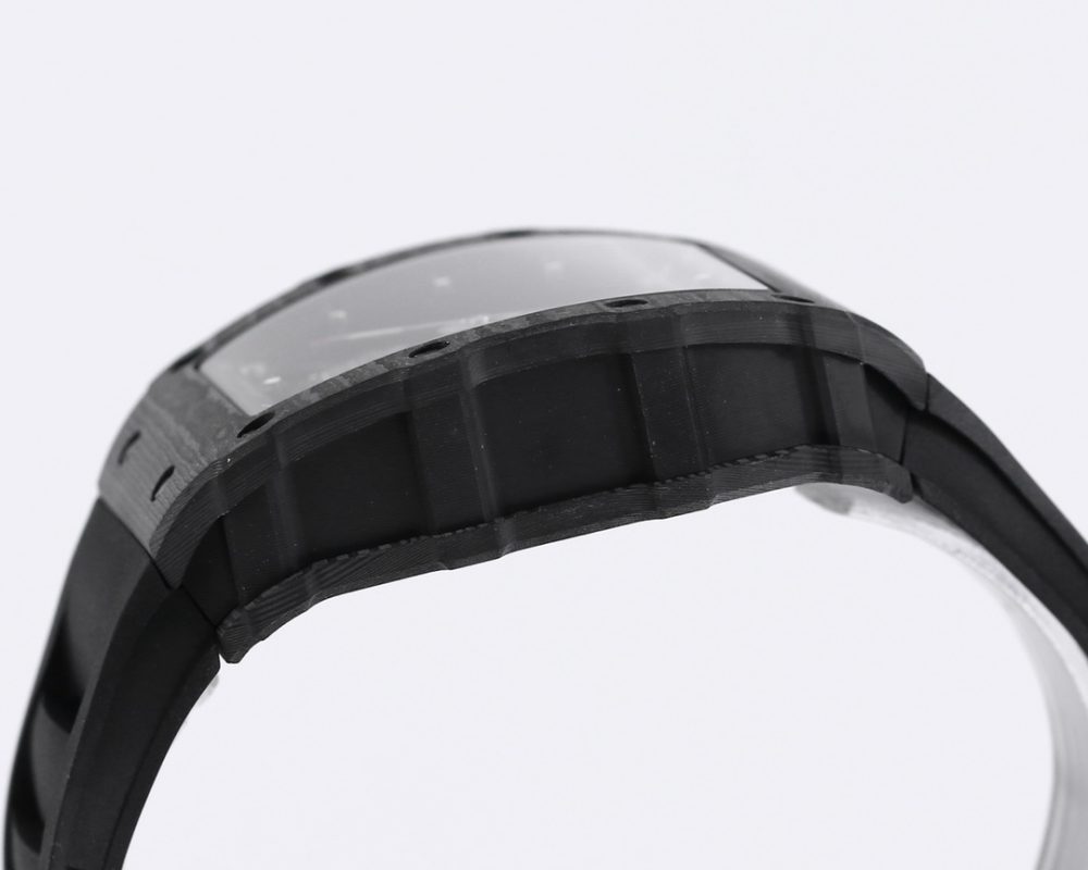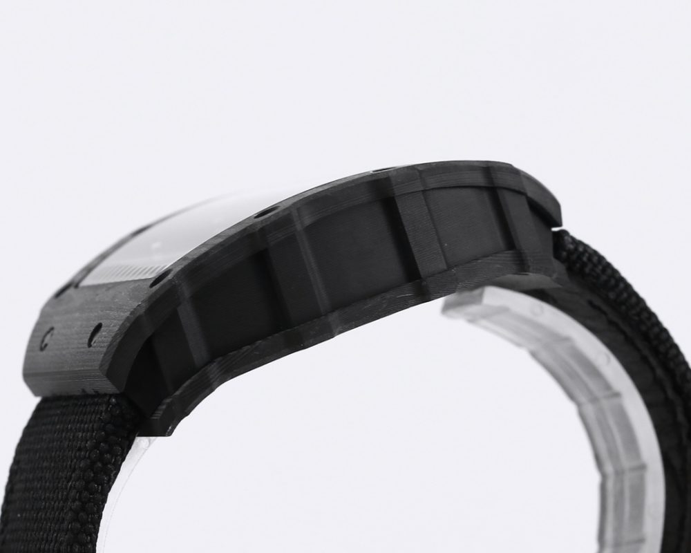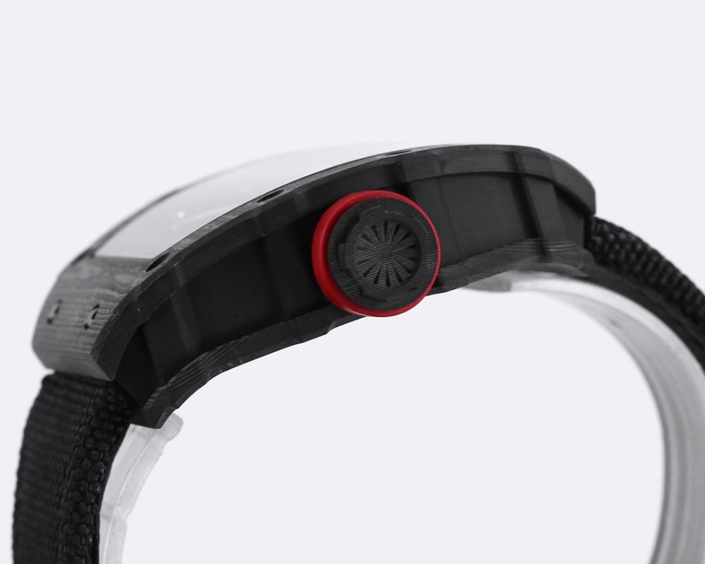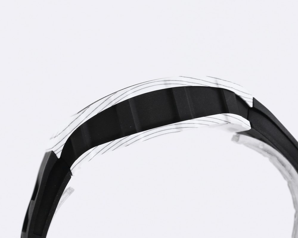 2 表殼:進口 NTPT 原裝紋路碳纖維打造、輕量級表款,克重僅 50g、內膽與表蓋鋼件採用鈦合金材料、CNC 高精密加工、使表殼配合完美無縫隙! 真正做到原裝正品細節。