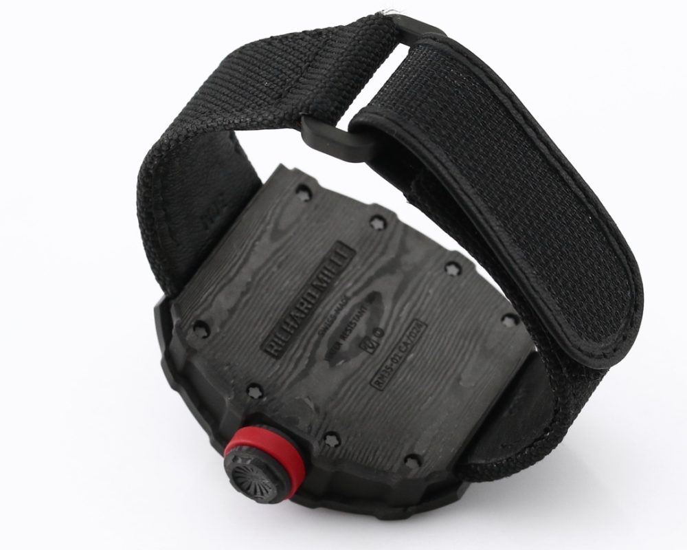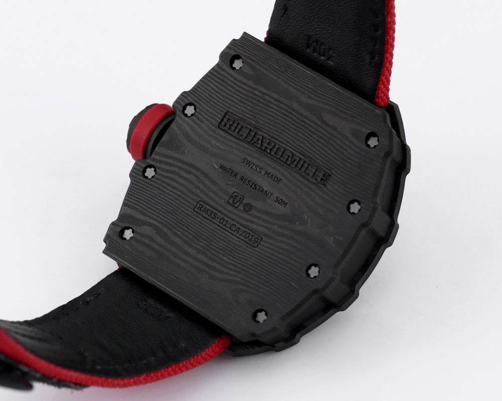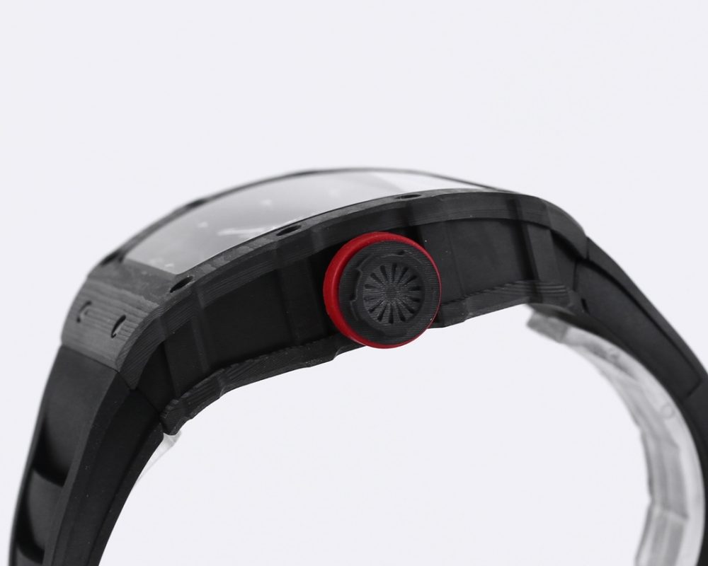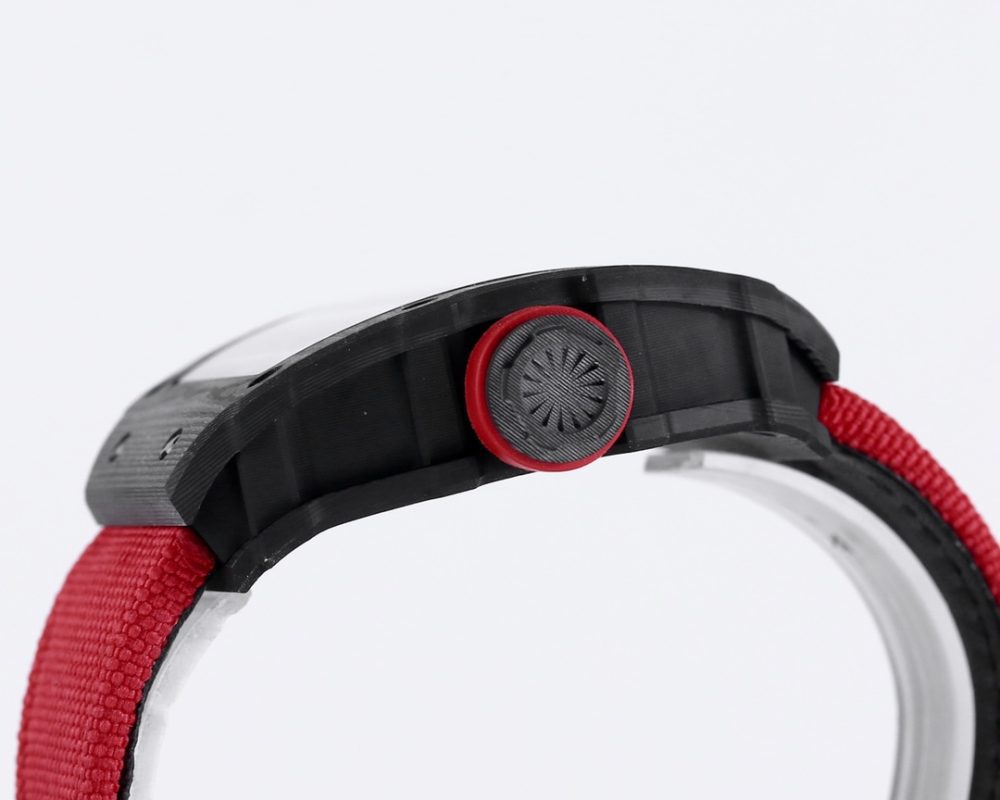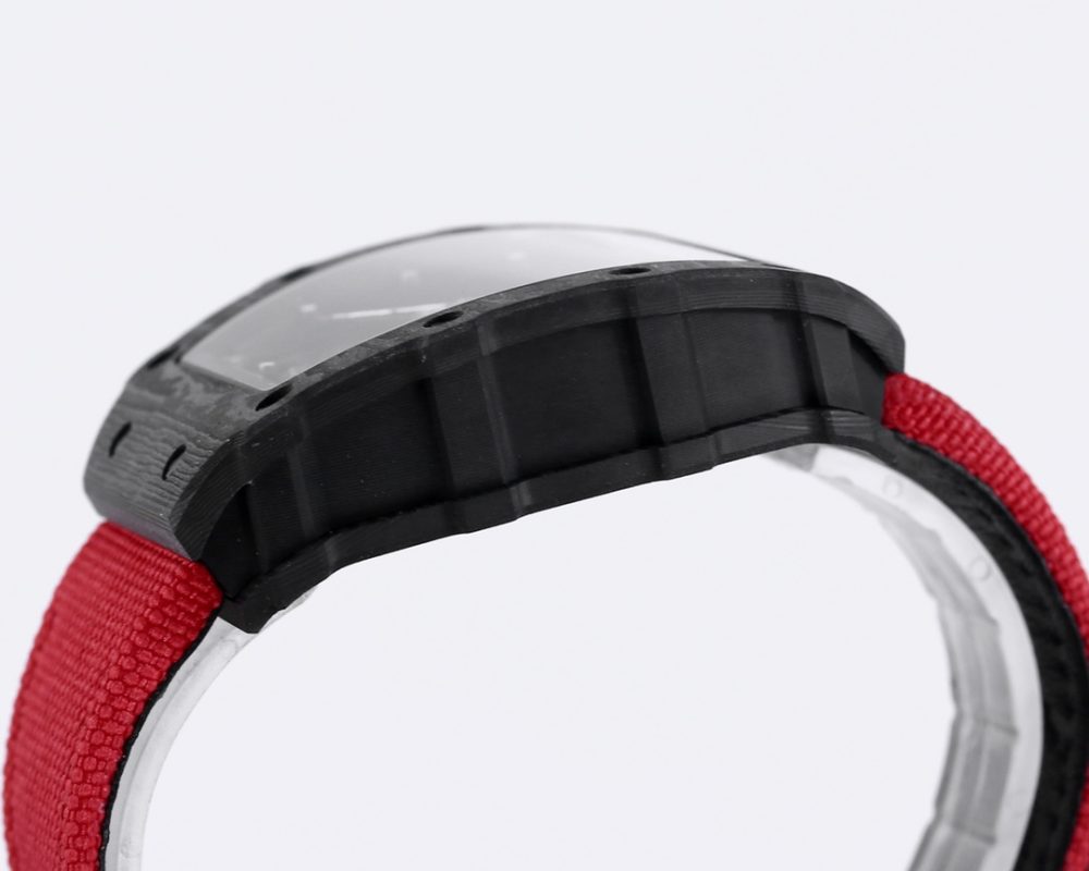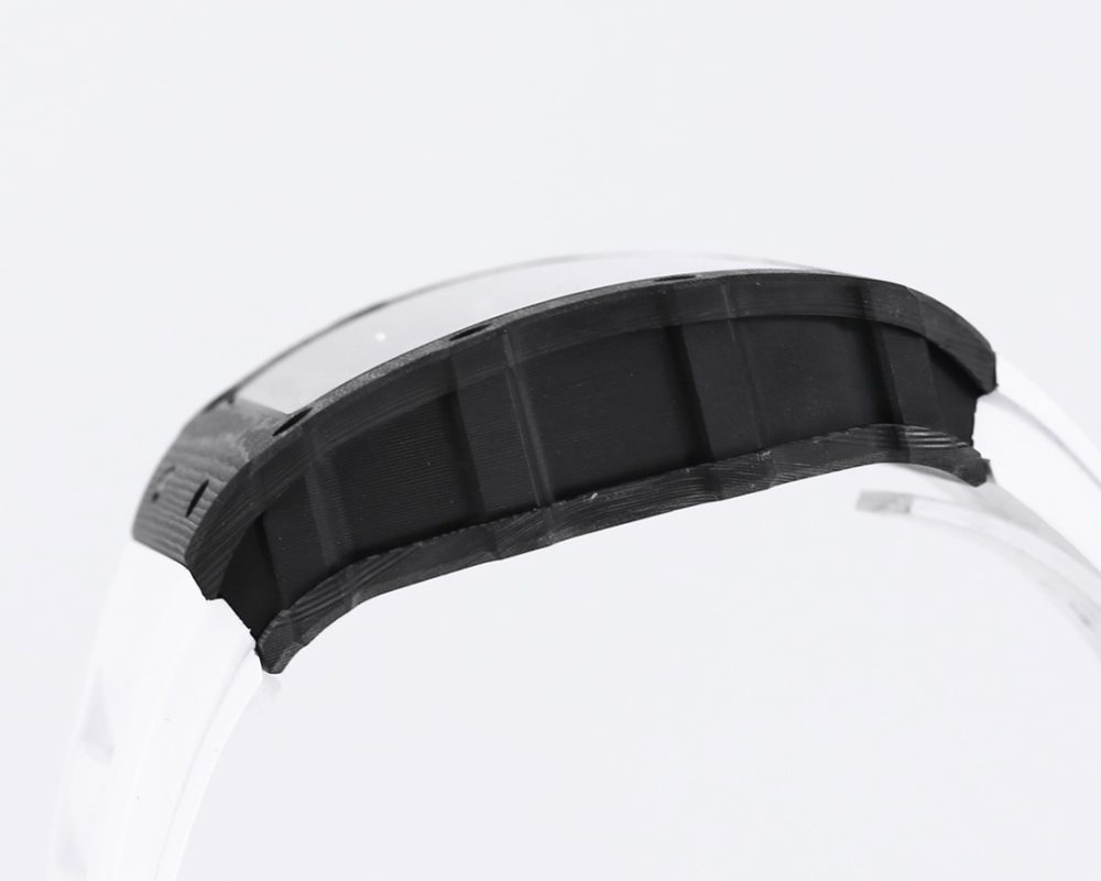 2 表殼:進口 NTPT 原裝紋路碳纖維打造、輕量級表款,克重僅 50g、內膽與表蓋鋼件採用鈦合金材料、CNC 高精密加工、使表殼配合完美無縫隙! 真正做到原裝正品細節。