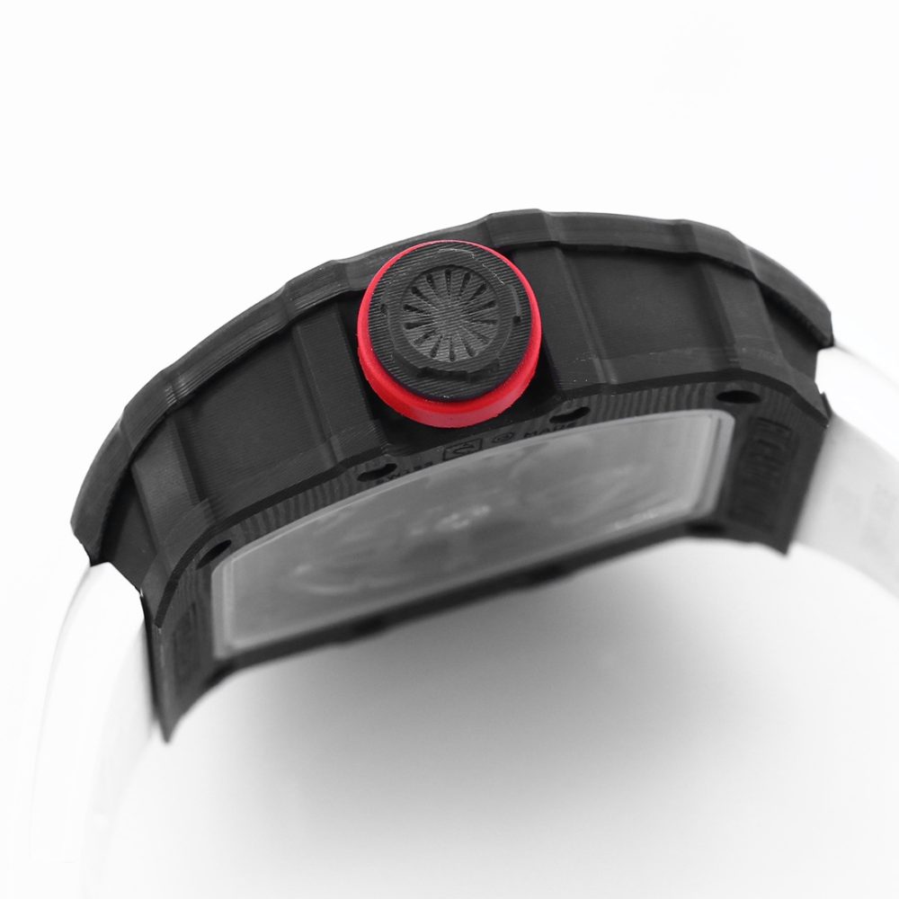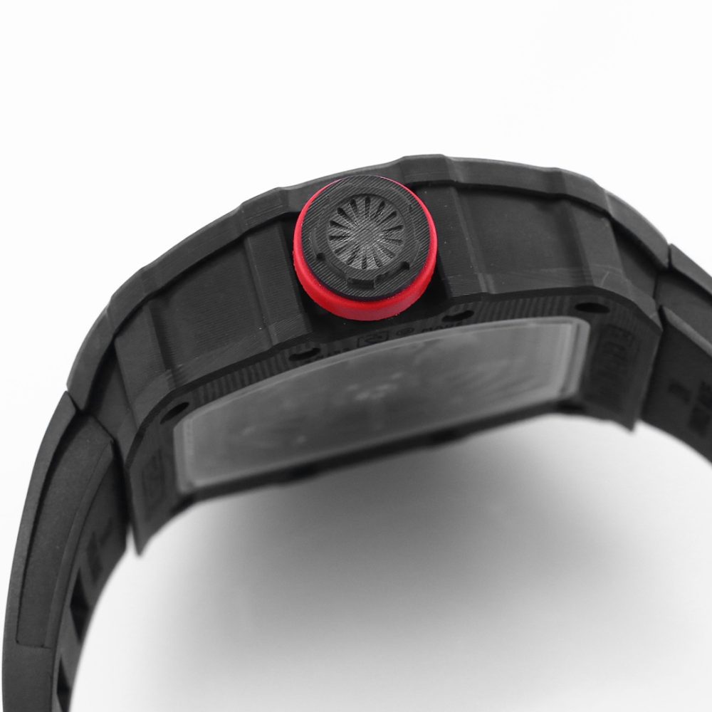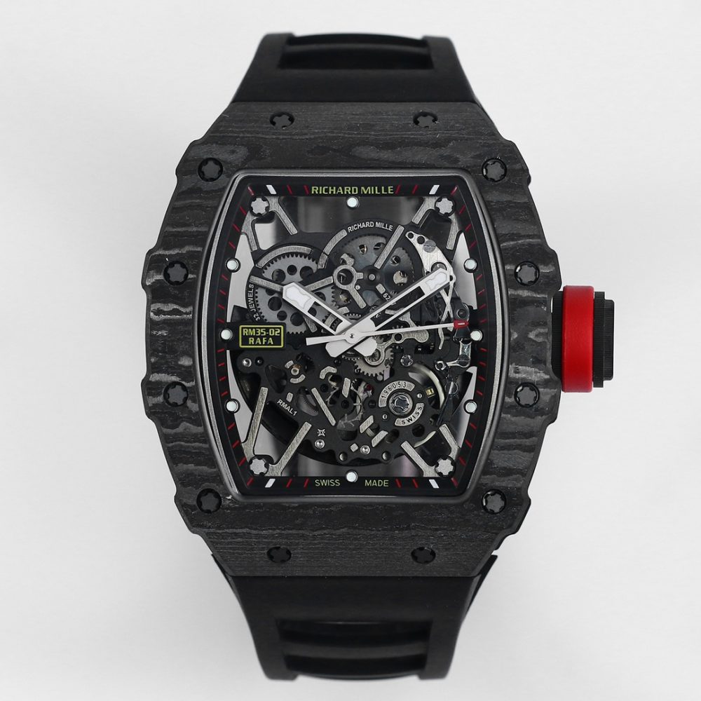 BBR厂推出顶级復刻手錶,精仿理查德米尔RM 35-02拉斐尔·纳达尔同款腕表。这款高仿腕錶搭载独家研发的RMAL1镂空全自动機械手錶机芯,并配备白色宝石避震器。表壳采用进口NTPT碳纤维材质,重量仅50克,结合钛合金内胆与高精度CNC工艺,完美复刻原装细节。此款高仿手錶配备蓝宝石水晶镜面及双防眩效果,提供橡胶表带与魔术贴表带两种选择,是追求极致工艺的復刻手錶代表作。