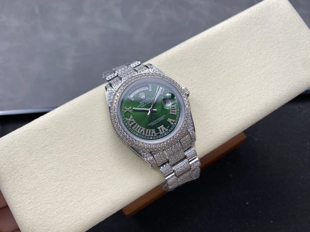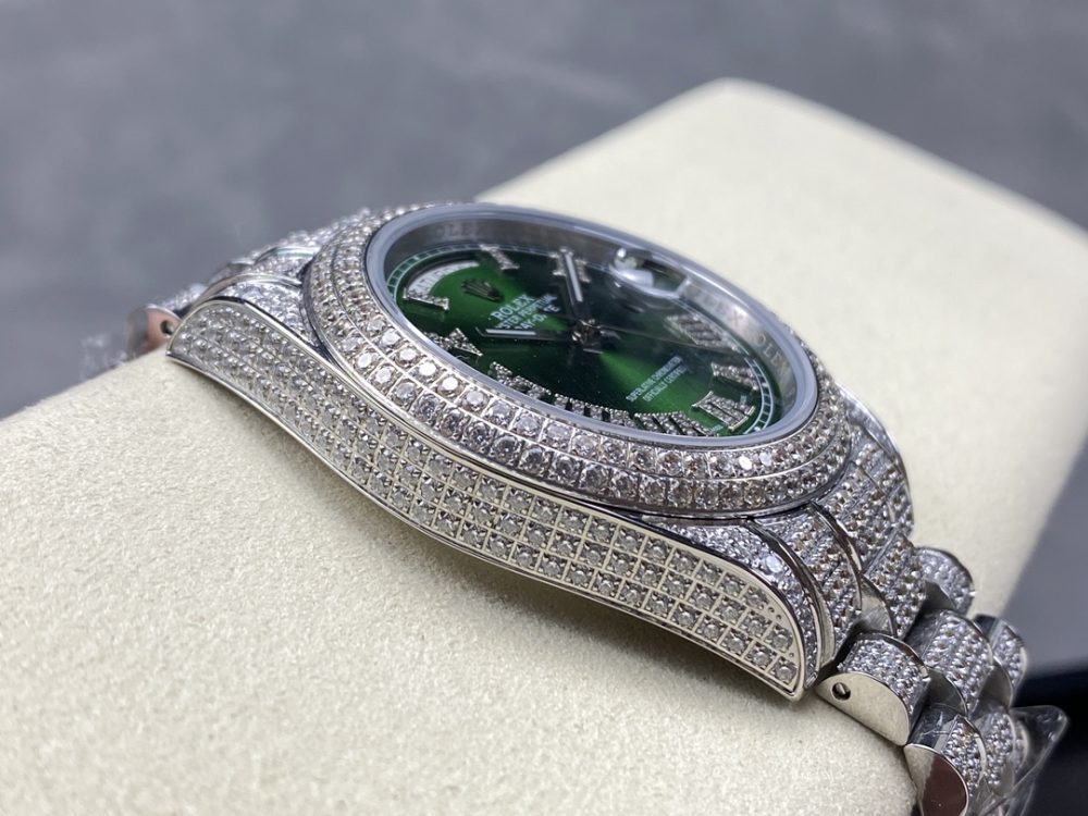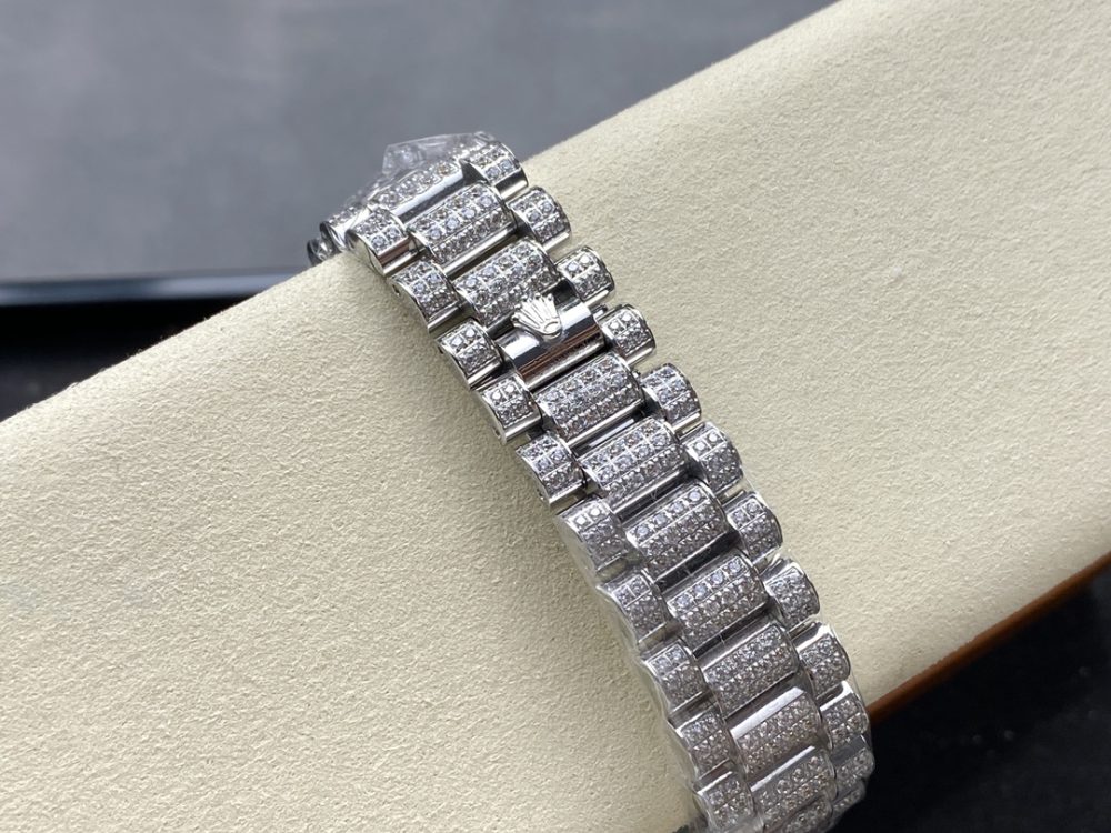 【表殼】腕表尺寸 40mm。 表圈,表殼,表鏈都密集鑲滿最頂級的施華洛世奇美鑽。 盡量還原正品奢華至極的無敵質感。