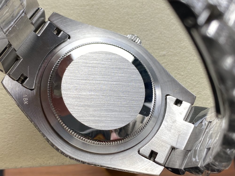 【錶帶】採用最新 904L 蠔式鋼打造,平整的鏈節組成,極其堅固,表鏈全身也整齊縝密的鑲滿美鑽,效果光華四射。