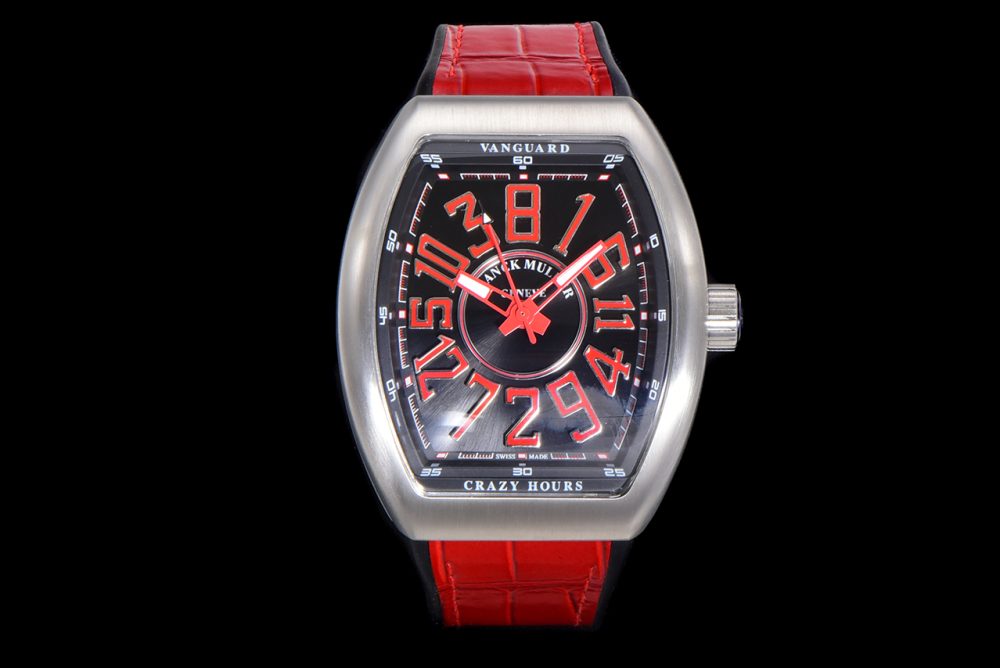 ABF推出的这款高仿手錶,精准復刻了法蘭克穆勒Vanguard V45 CRAZY HOUR瘋狂時間系列。它採用定制機械機芯,實現了標誌性的跳時功能與大秒針設計,1:1還原原版視覺。這款機械手錶使用316L精鋼打造三明治錶殼,配件可與原版通用,展現了法穆蘭獨特的運動優雅美學,是高仿手錶領域中匠心工藝的體現。